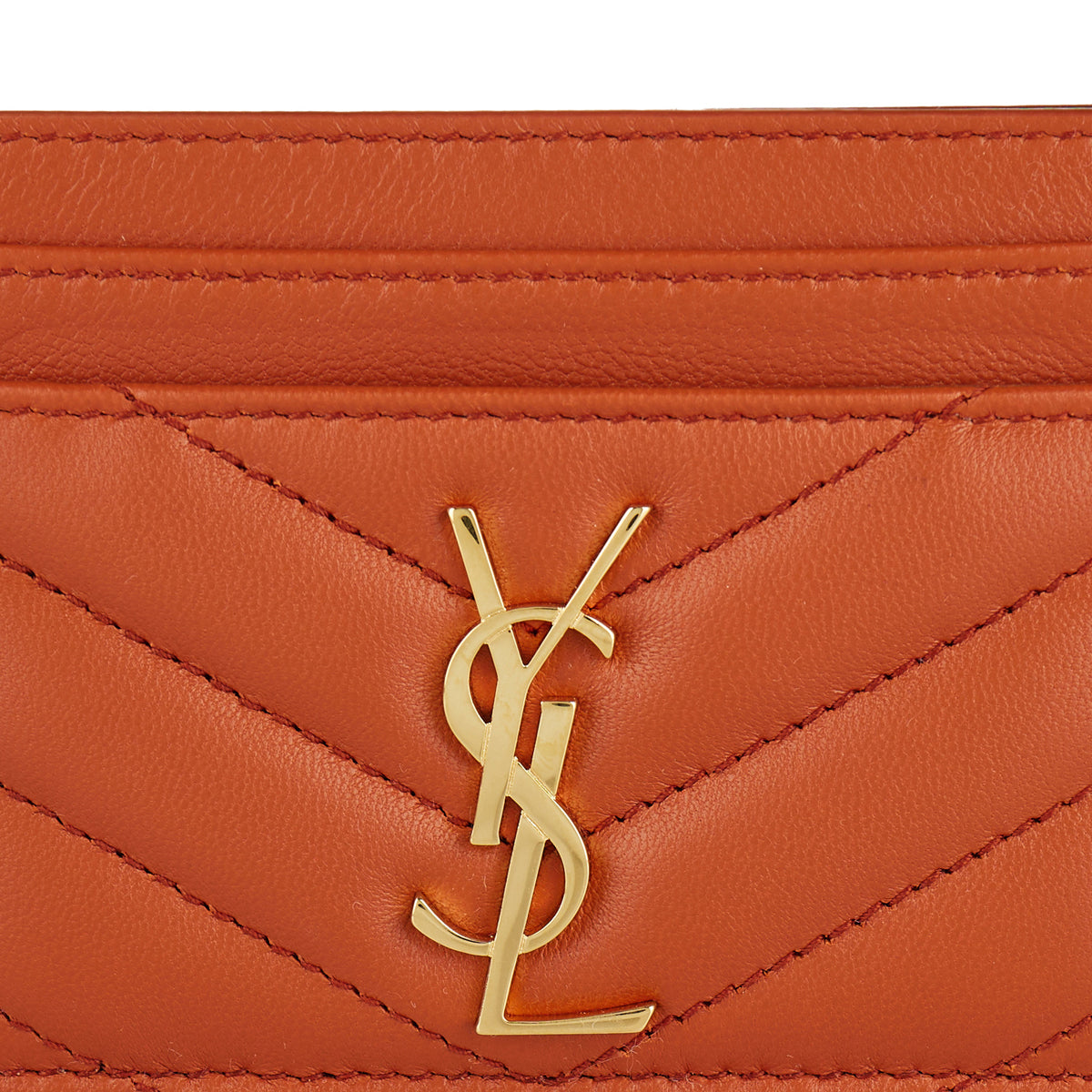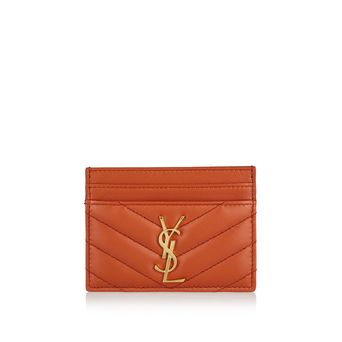 Embellished with the iconic Cassandre emblem in gold metal, this card case in dark mandarin leather features five sleek card slots for daily essentials.