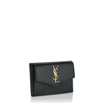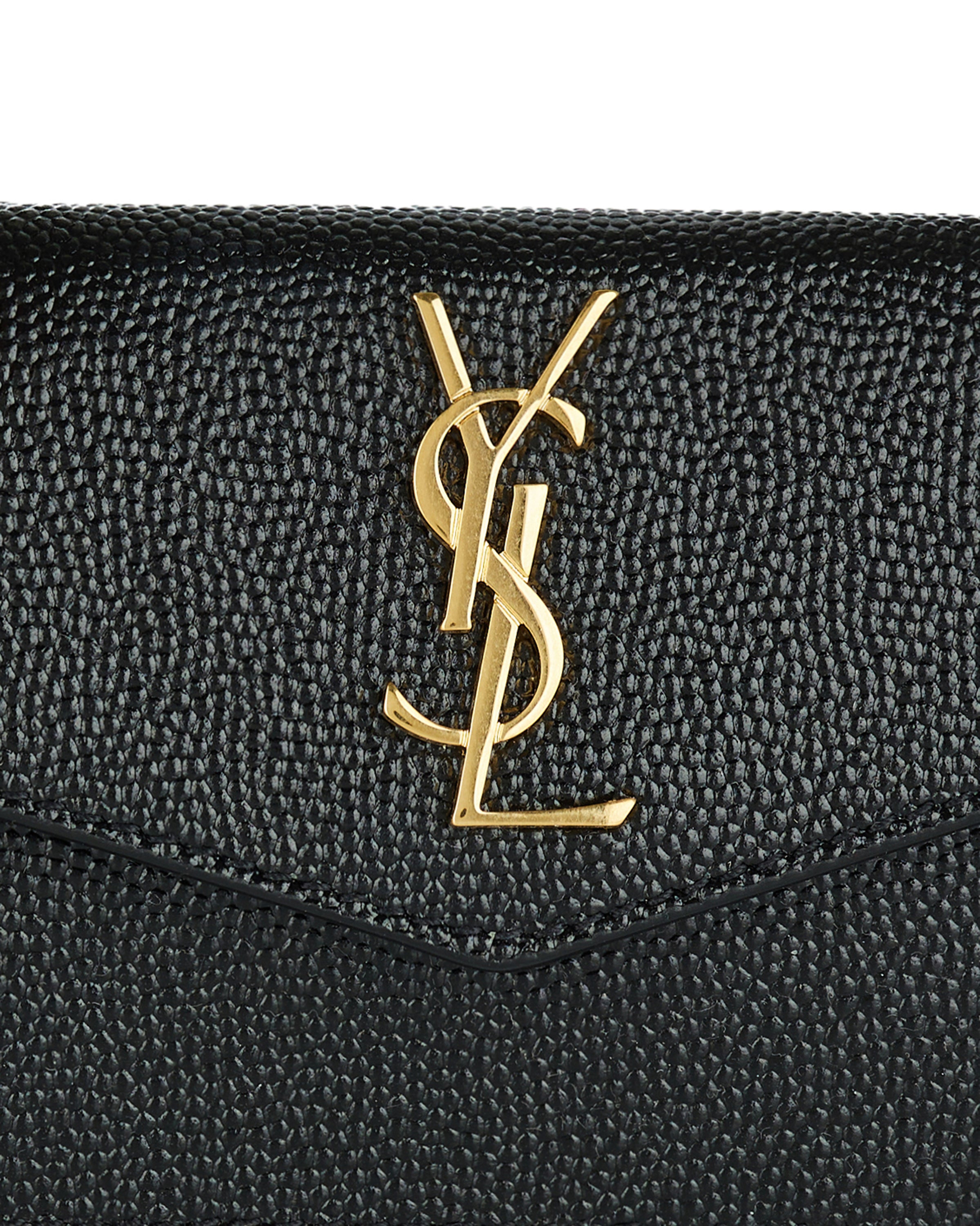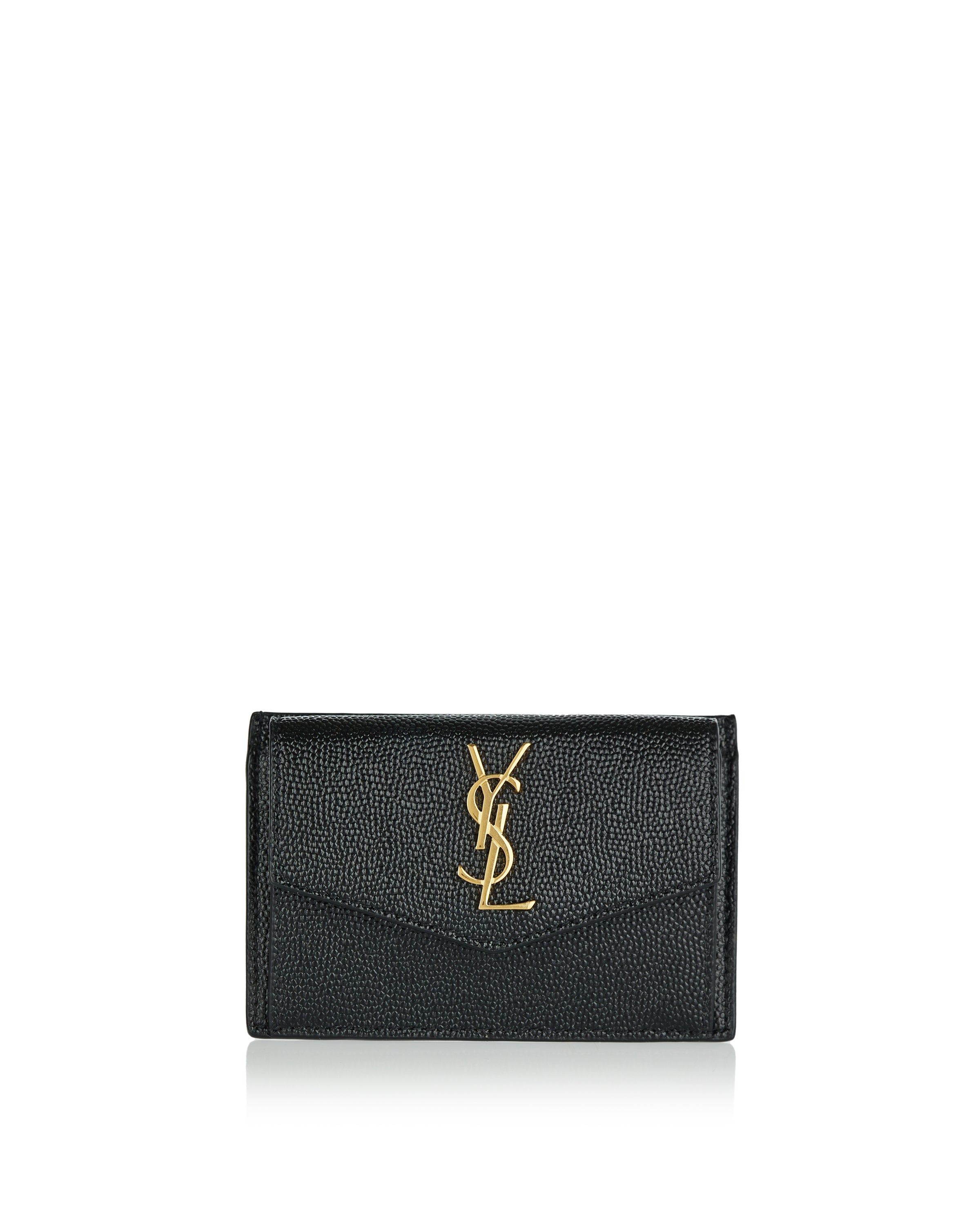 Compact card case crafted from grain de poudre leather, defined by a sleek flap silhouette and refined structure for everyday organization.