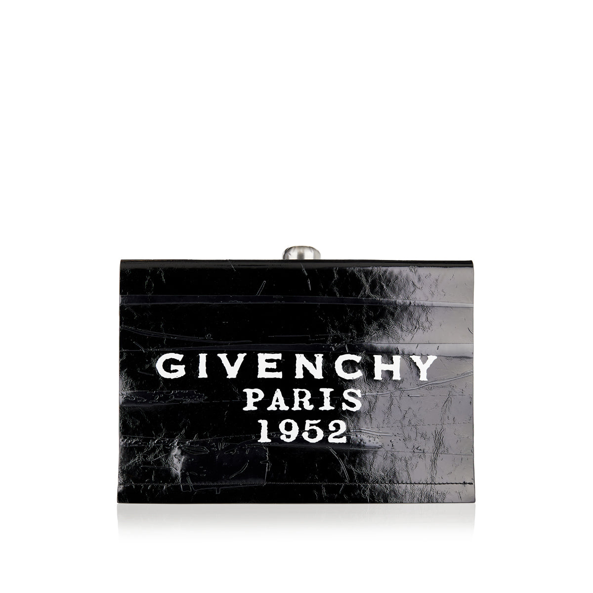 The Givenchy Paris 1952 leather pochette reflects timeless sophistication with a contemporary edge. Crafted from smooth black leather, this piece is detailed with a refined Givenchy Paris 1952 signature that celebrates the house’s heritage. Its sleek rectangular design ensures functionality while exuding elegance, making it an ideal companion for both business and evening occasions.