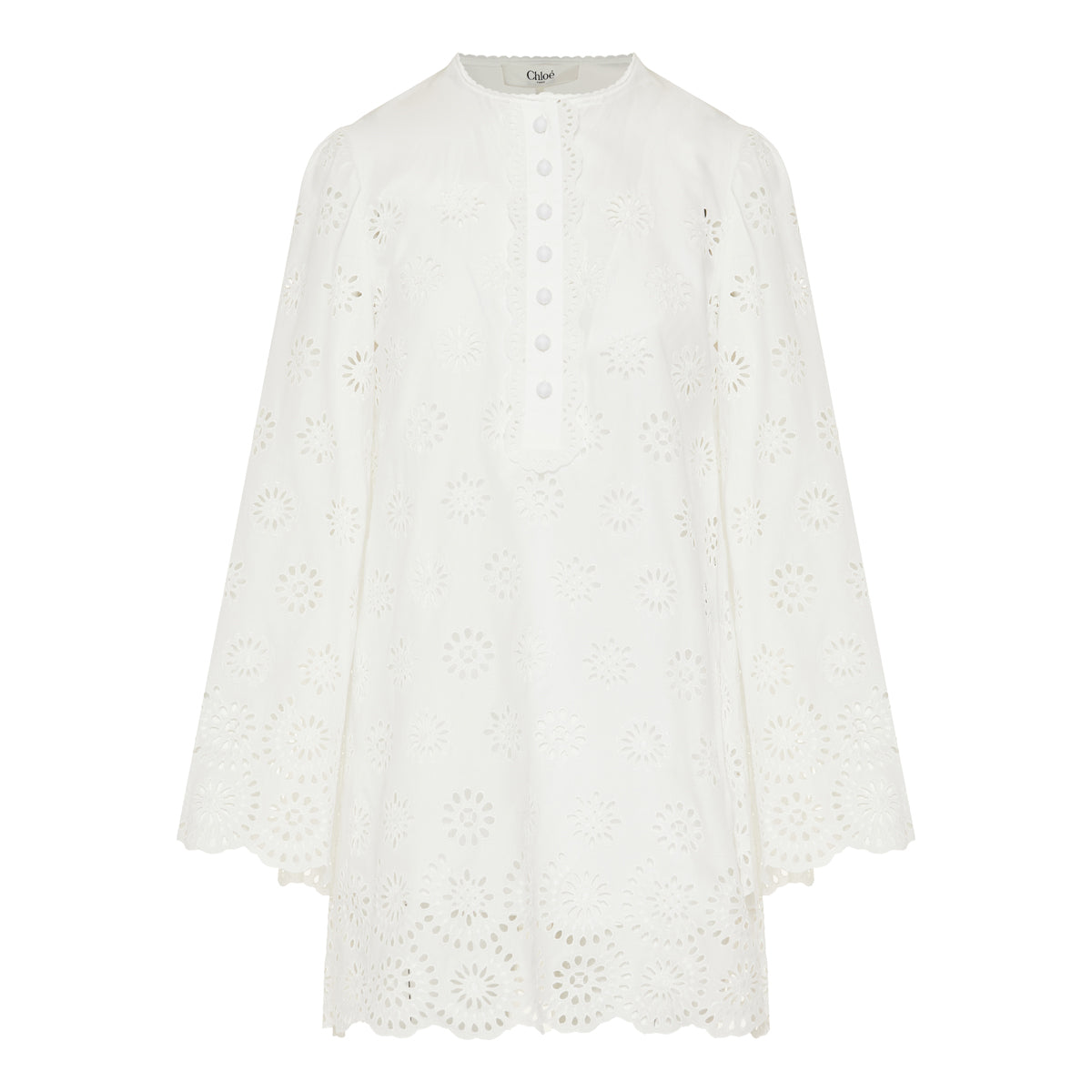 Chloé Scalloped broderie anglaise cotton-blend mini dress