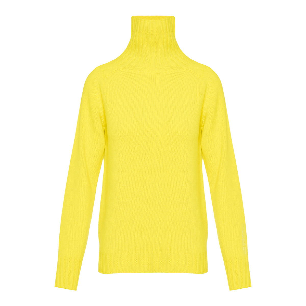 A bold and modern JW Anderson jumper in neon yellow, knitted from 100% wool for a luxurious yet soft feel. The medium‑weight knit features a high turtleneck and rib trims, while discrete ‘JW Anderson made in Scotland’ embroidery on the sleeve adds an artisanal detail. Ideal for refined casual wear or layering during cooler evenings.