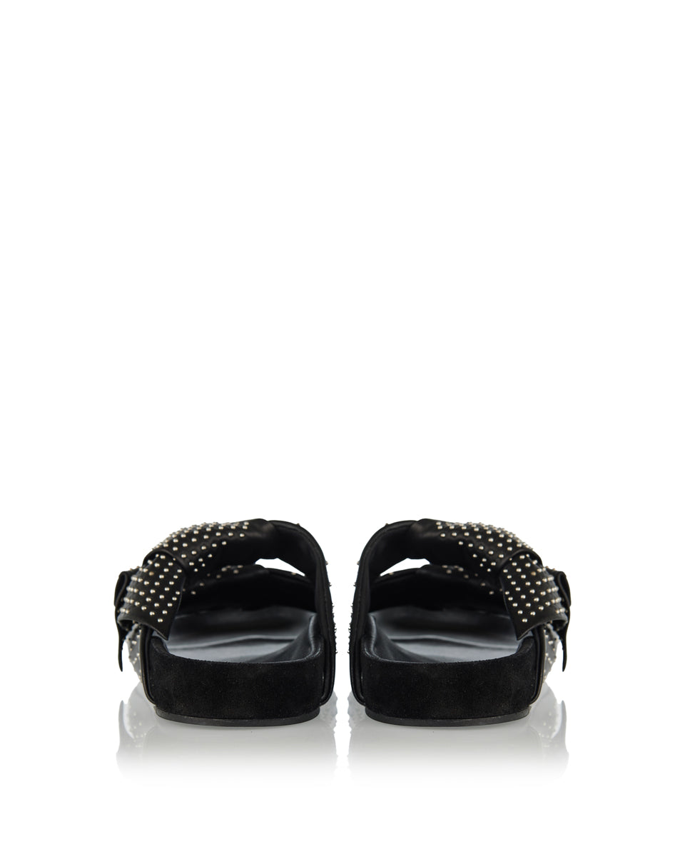 Statement sandals that merge playful femininity with edgy detailing, rooted in Isabel Marant’s signature Parisian-cool aesthetic.