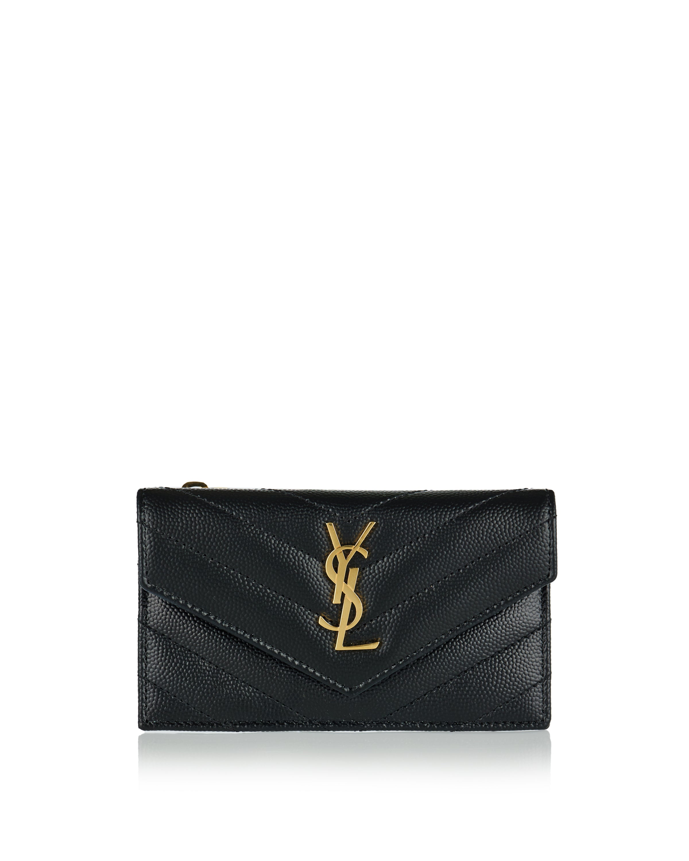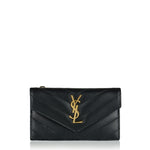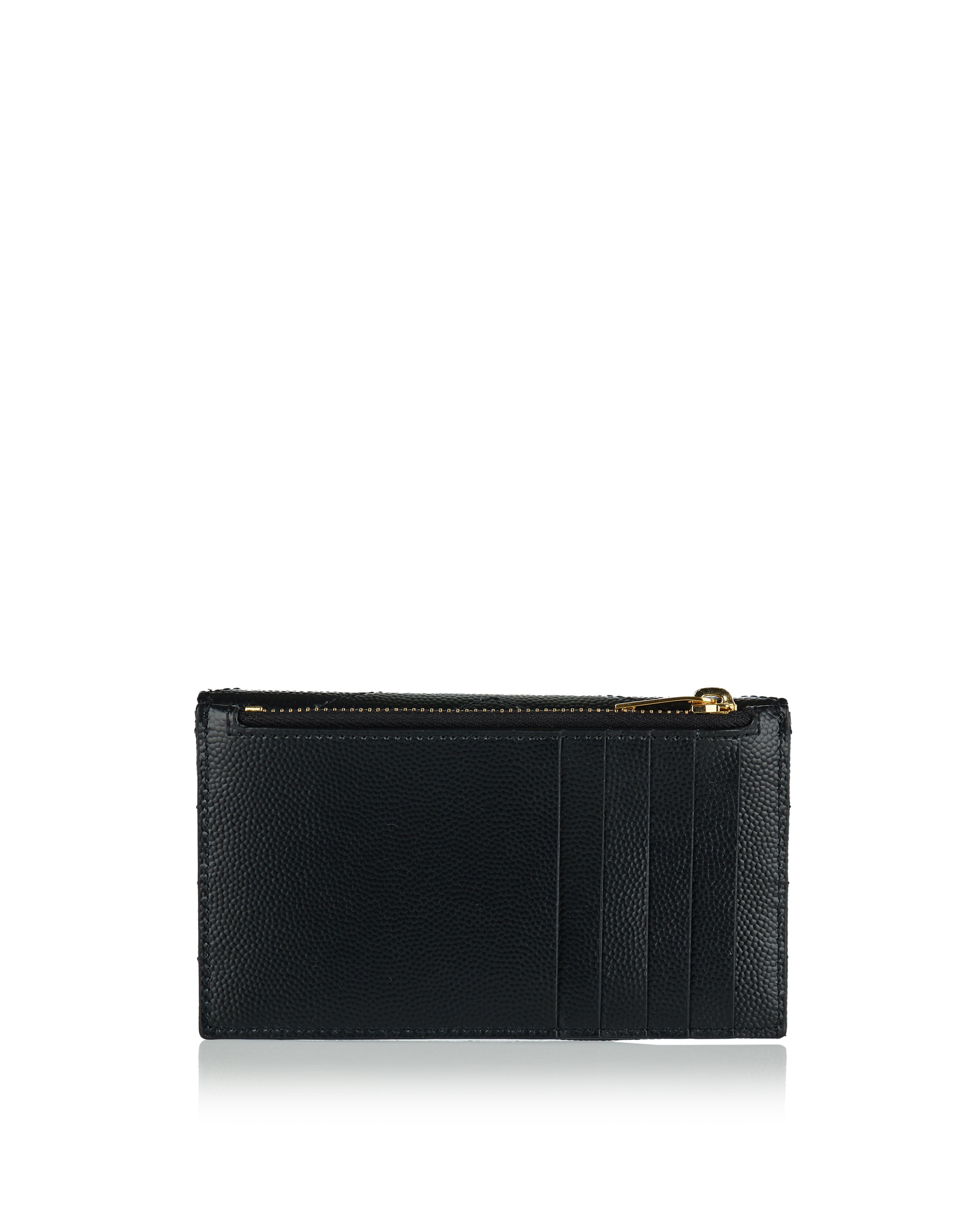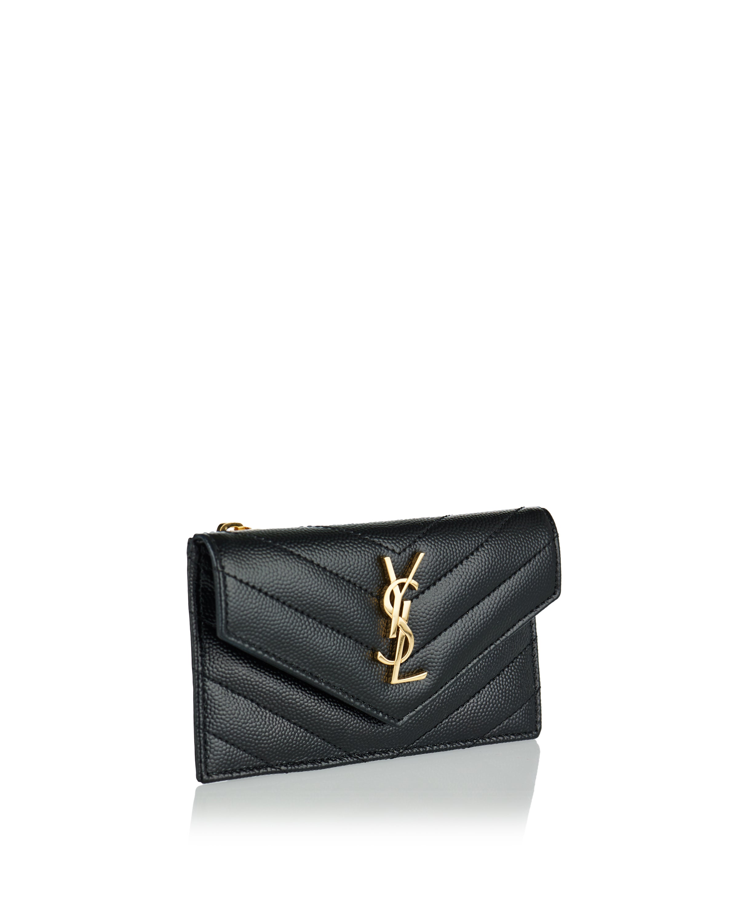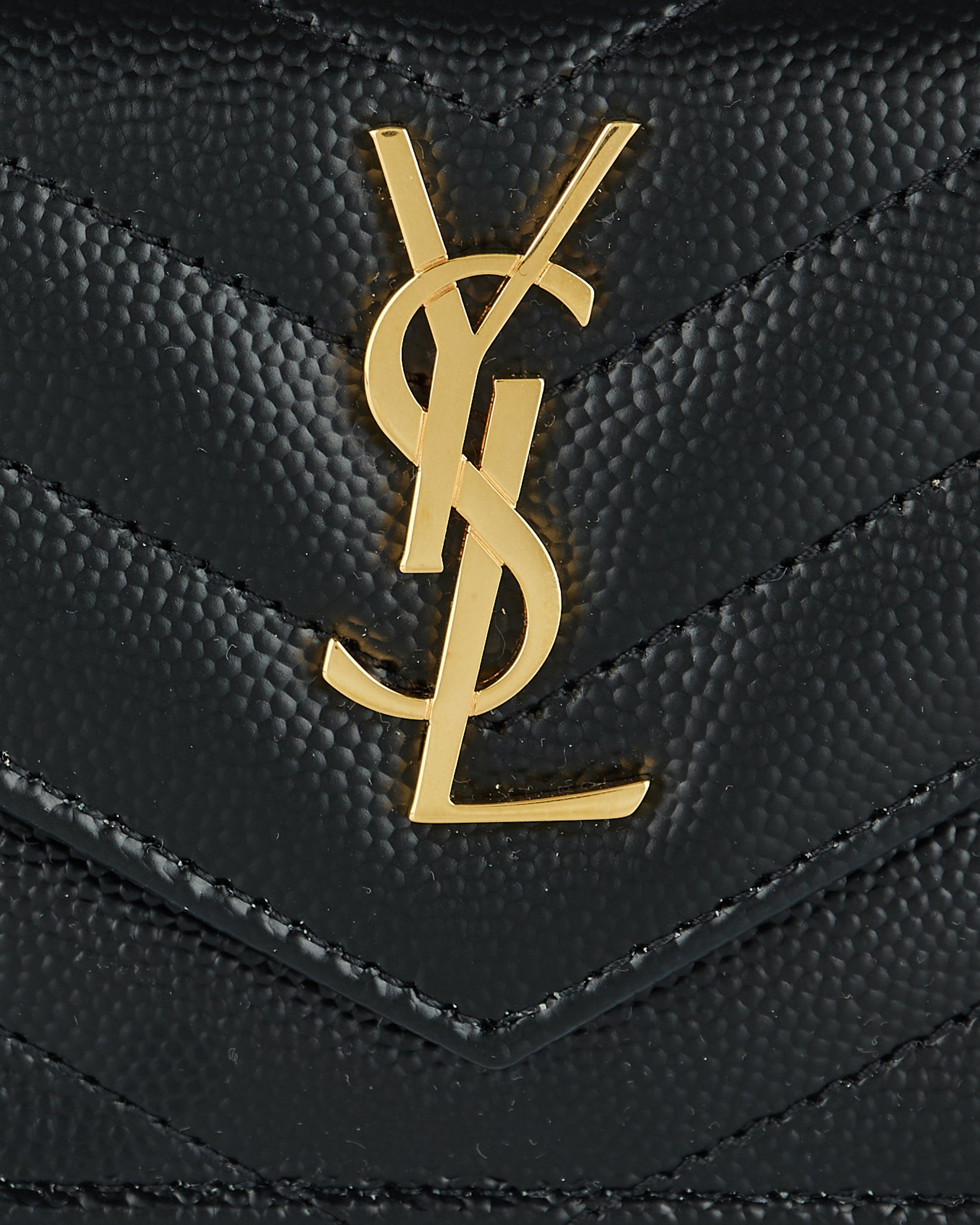 Compact flap card case crafted from grain de poudre leather, defined by matelassé quilting and the iconic Cassandre hardware for refined everyday organization.