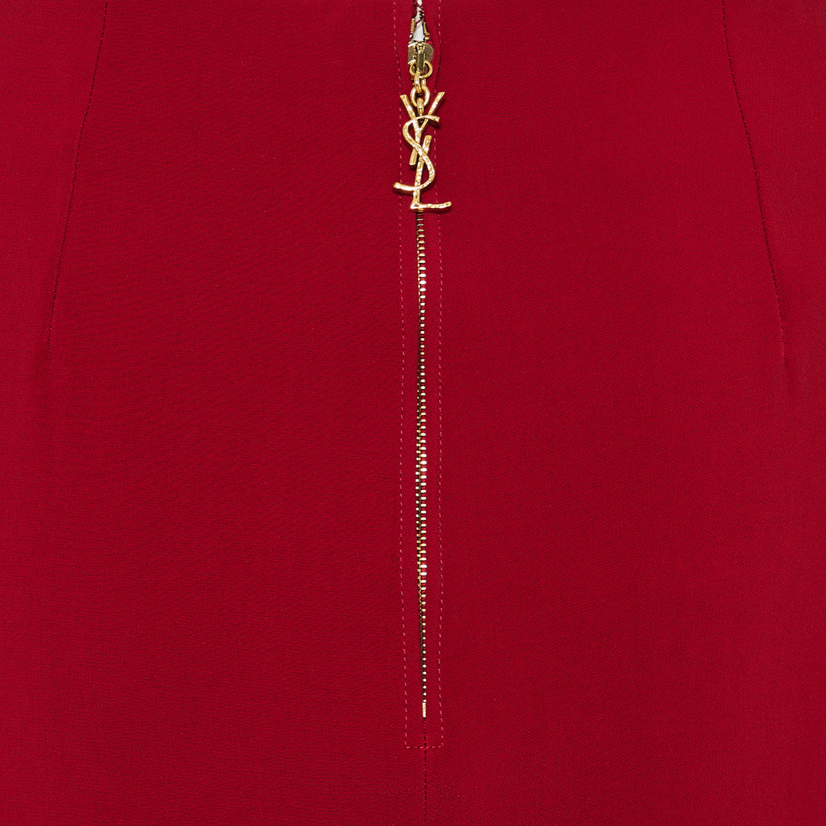 This Saint Laurent pencil skirt in satin is a statement of sleek sophistication. Designed with a high waist and a fitted silhouette, it elegantly elongates the figure while the lustrous satin finish adds depth and texture. Perfect for refined evening occasions or elevated office attire, it blends timeless tailoring with modern allure, showcasing the maison’s mastery of luxurious essentials.