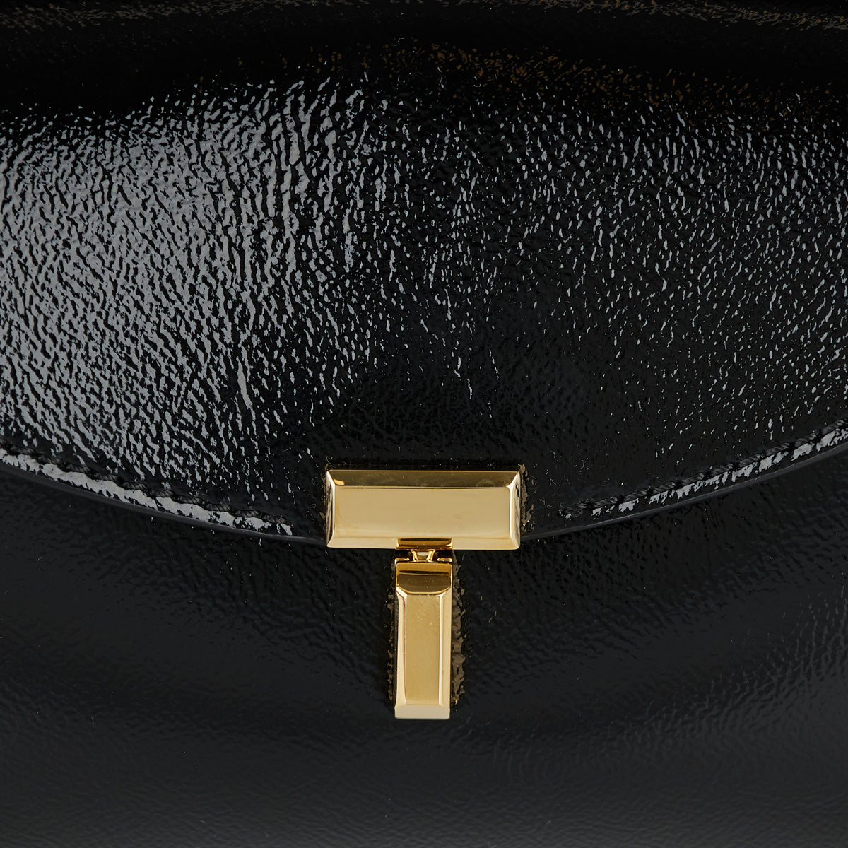 A refined mini clutch from Totême, featuring glossy naplack leather and the signature T-Lock twist clasp. Ideal for evening events and formal occasions, this compact accessory offers a touch of luxury and sophistication to your ensemble.