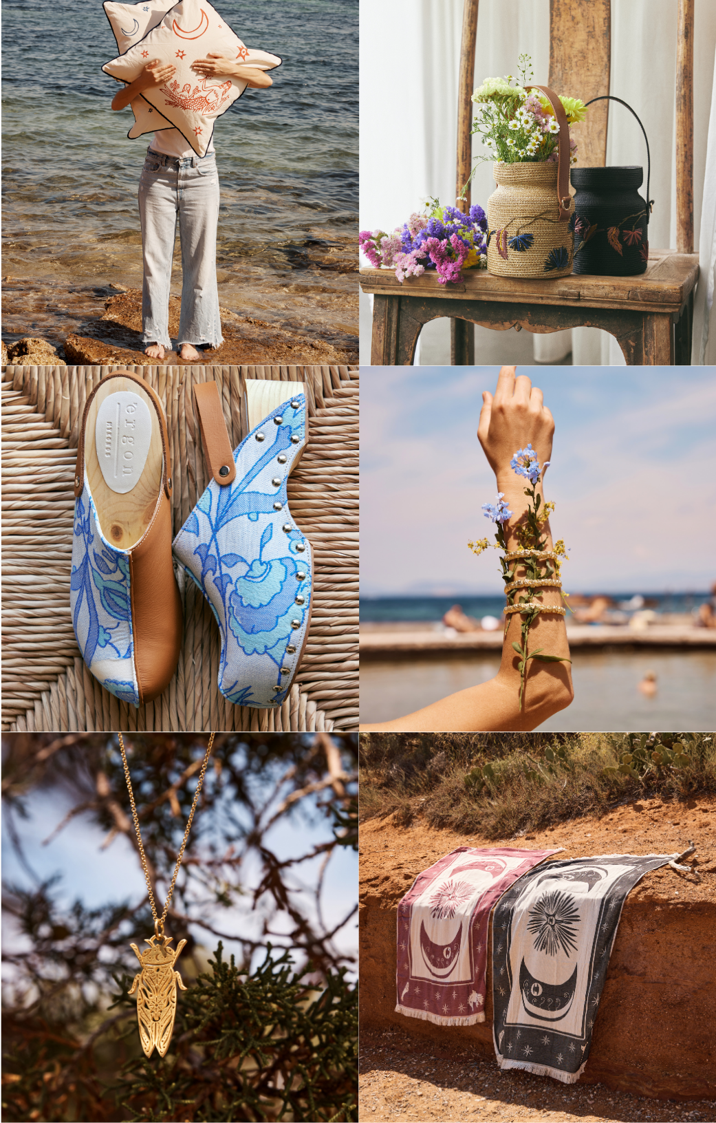 Our visual storytelling is inspired by the bohemian lifestyle of the Greek islands in the 1970s, embracing the essence of slow living. It reflects a world where people cherish the sun, savor time, and find beauty in the details. Just like the carefully curated objects—crafted with unique artistry and precious materials—our imagery captures a sense of authenticity, timeless elegance, and lasting quality.