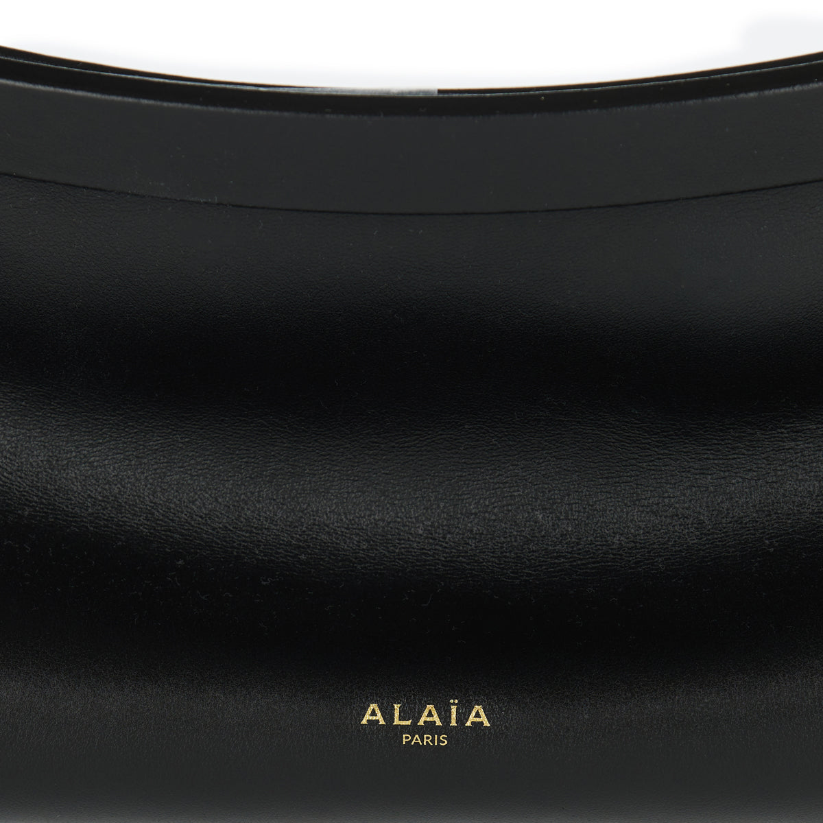 Alaïa’s Le Click East West Medium Bag in glossy calfskin evokes sculptural elegance with its curved silhouette, leather-wrapped hinge opening, and architectural bottom folds. Handcrafted in Italy, it features metallic ring-tied details and an adjustable strap for effortless shoulder or crossbody wear. A statement of refined sensuality, designed to move with you.