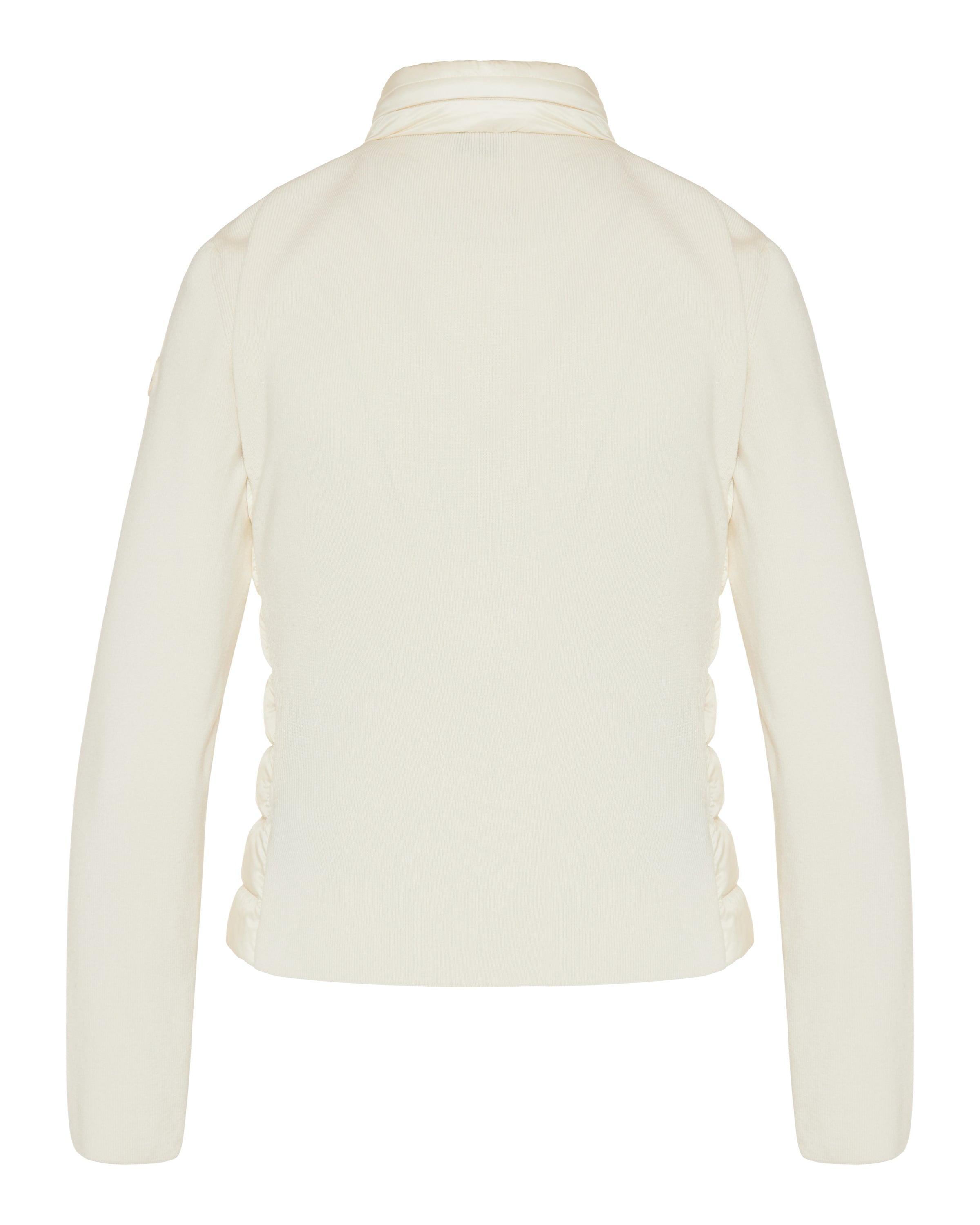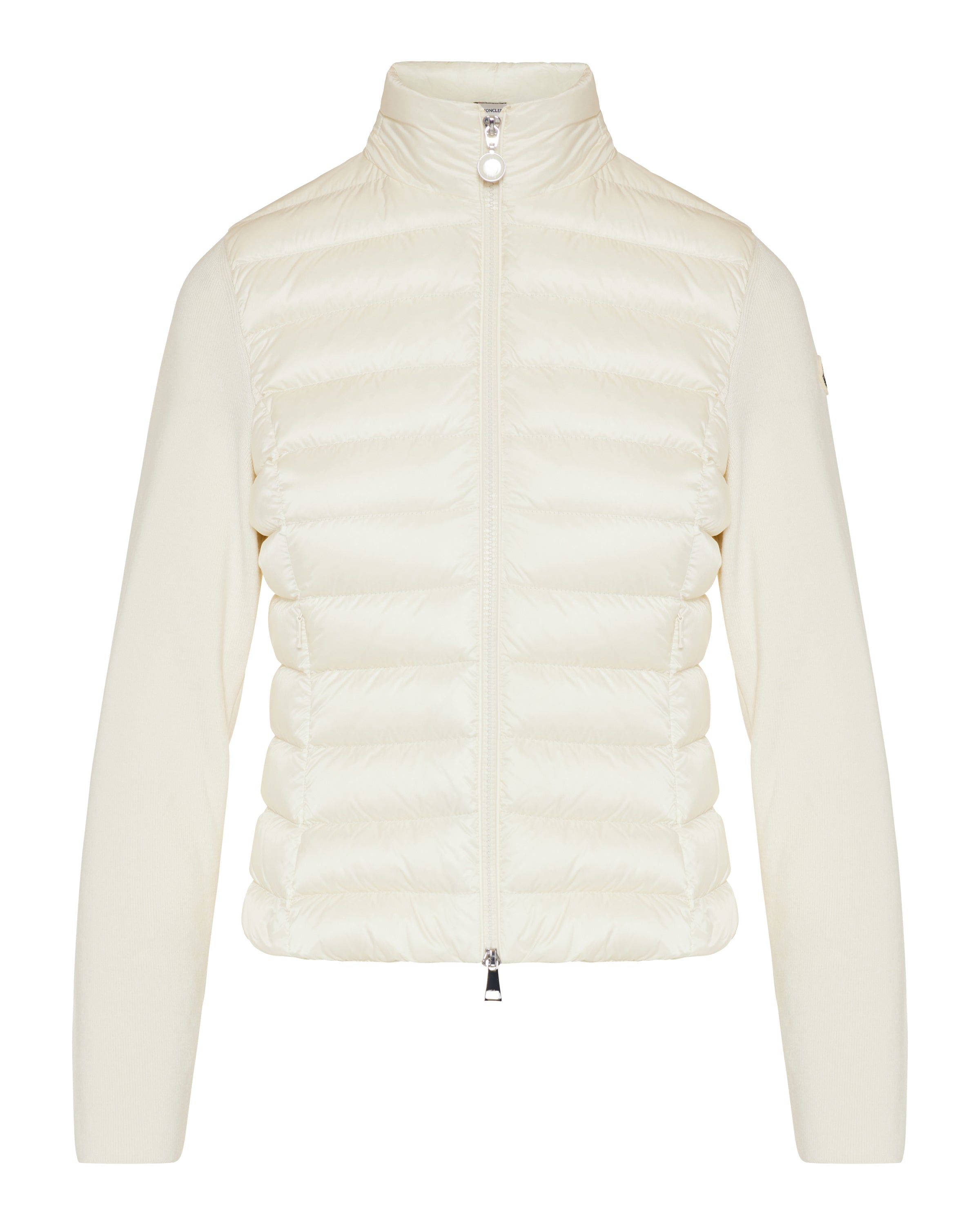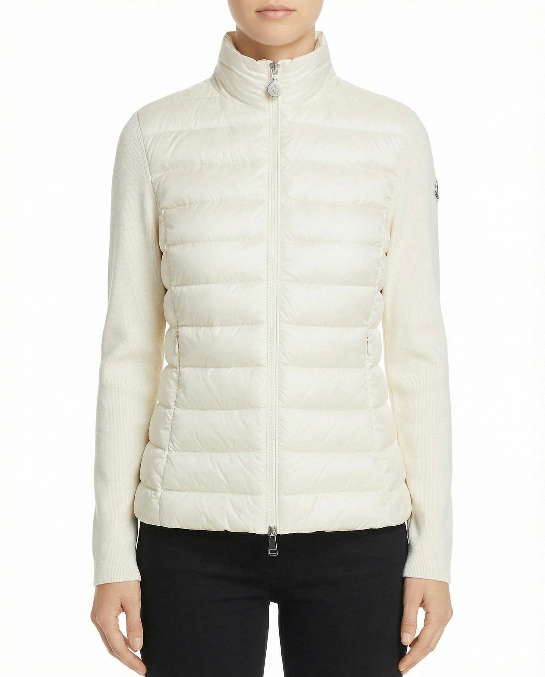 A refined knit cardigan elevated with quilted detailing for a balanced blend of structure and softness.