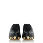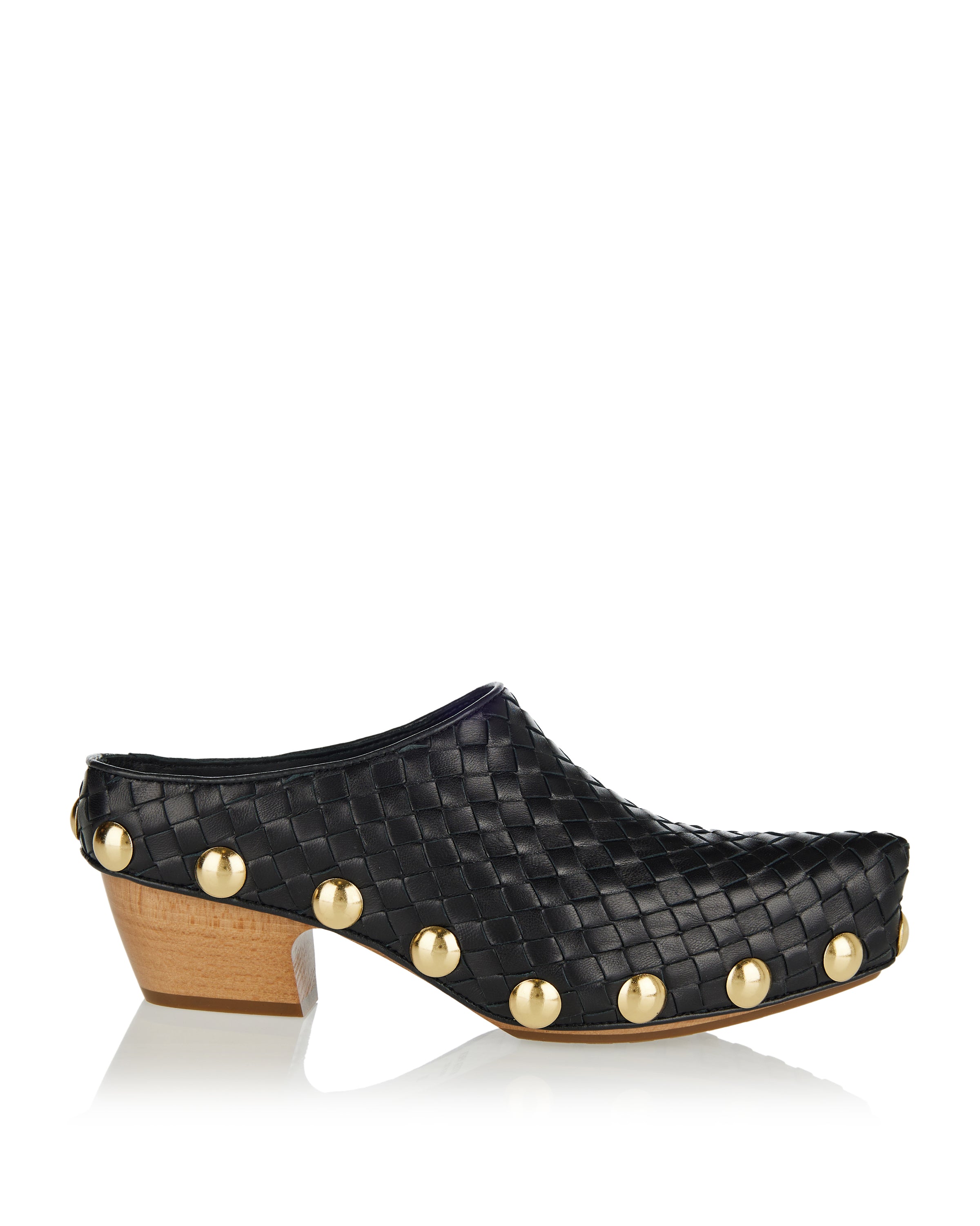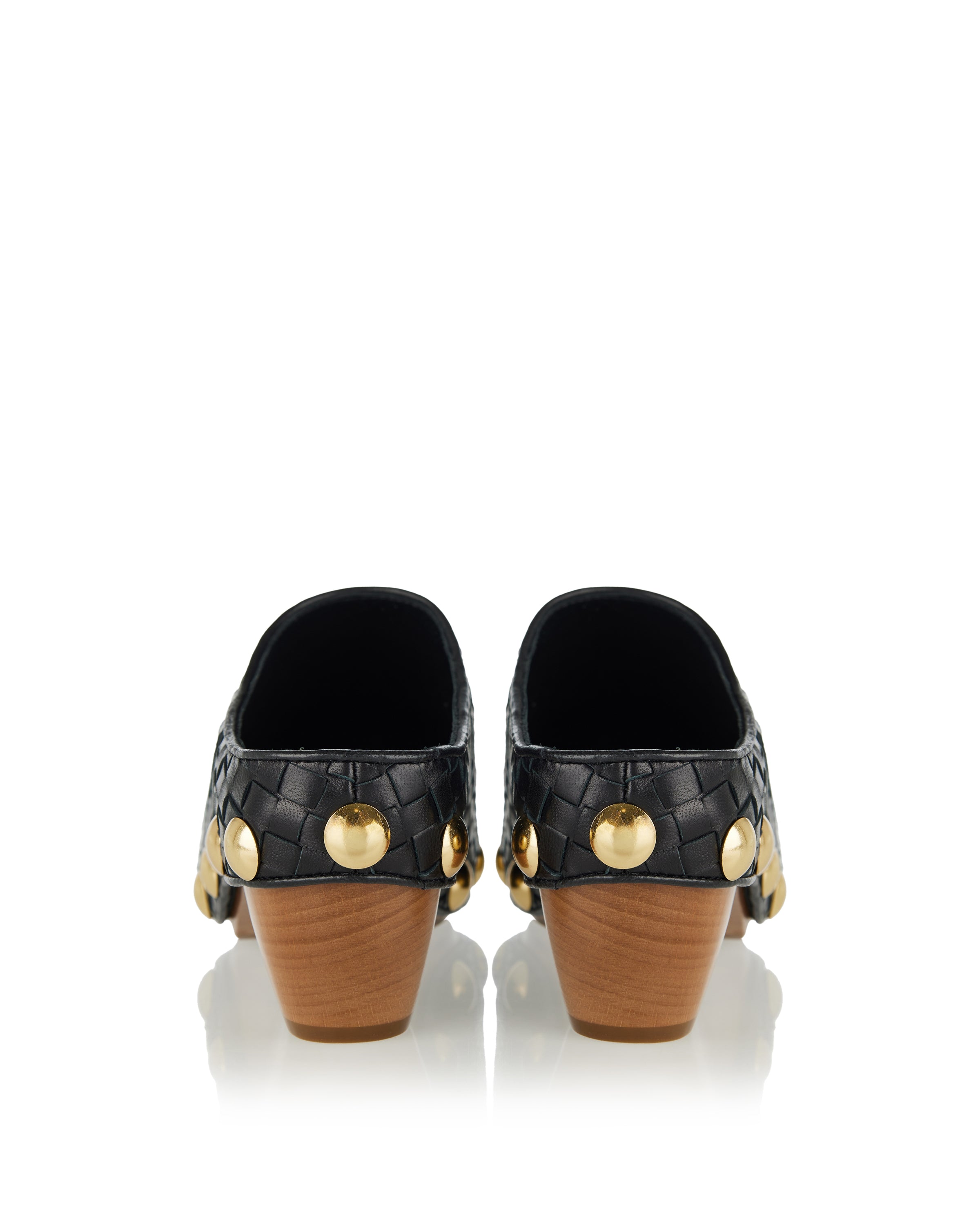 Sculptural clogs defined by smooth leather construction and a bold, curved silhouette inspired by the iconic gondola shape.