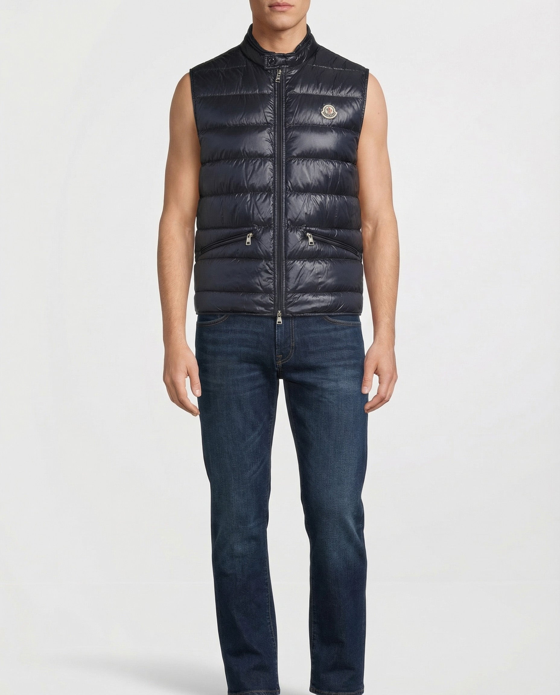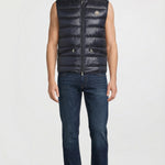 A lightweight quilted gilet filled with down, designed for streamlined warmth and versatile layering.