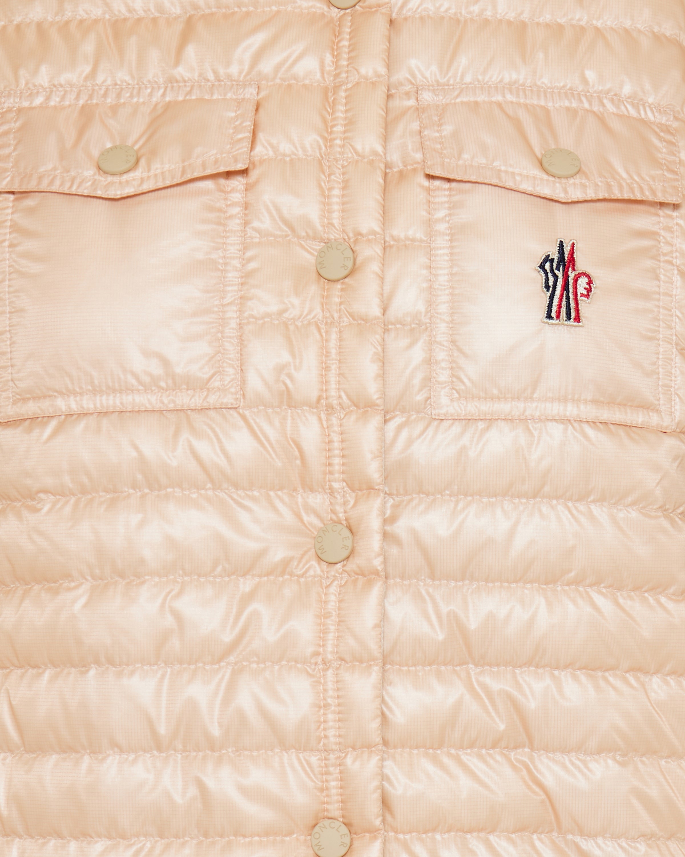 A streamlined down vest combining lightweight insulation with a sleek, technical silhouette.