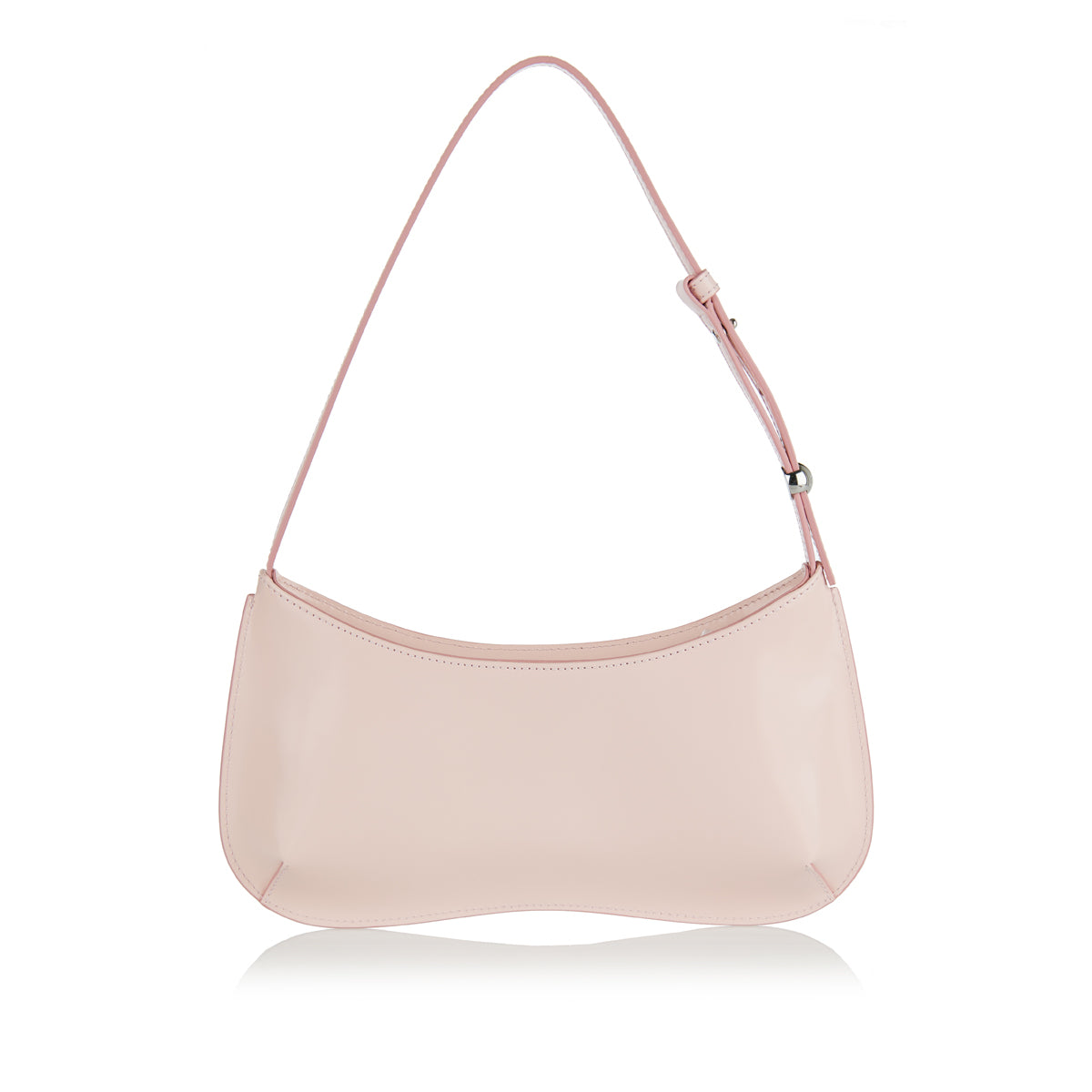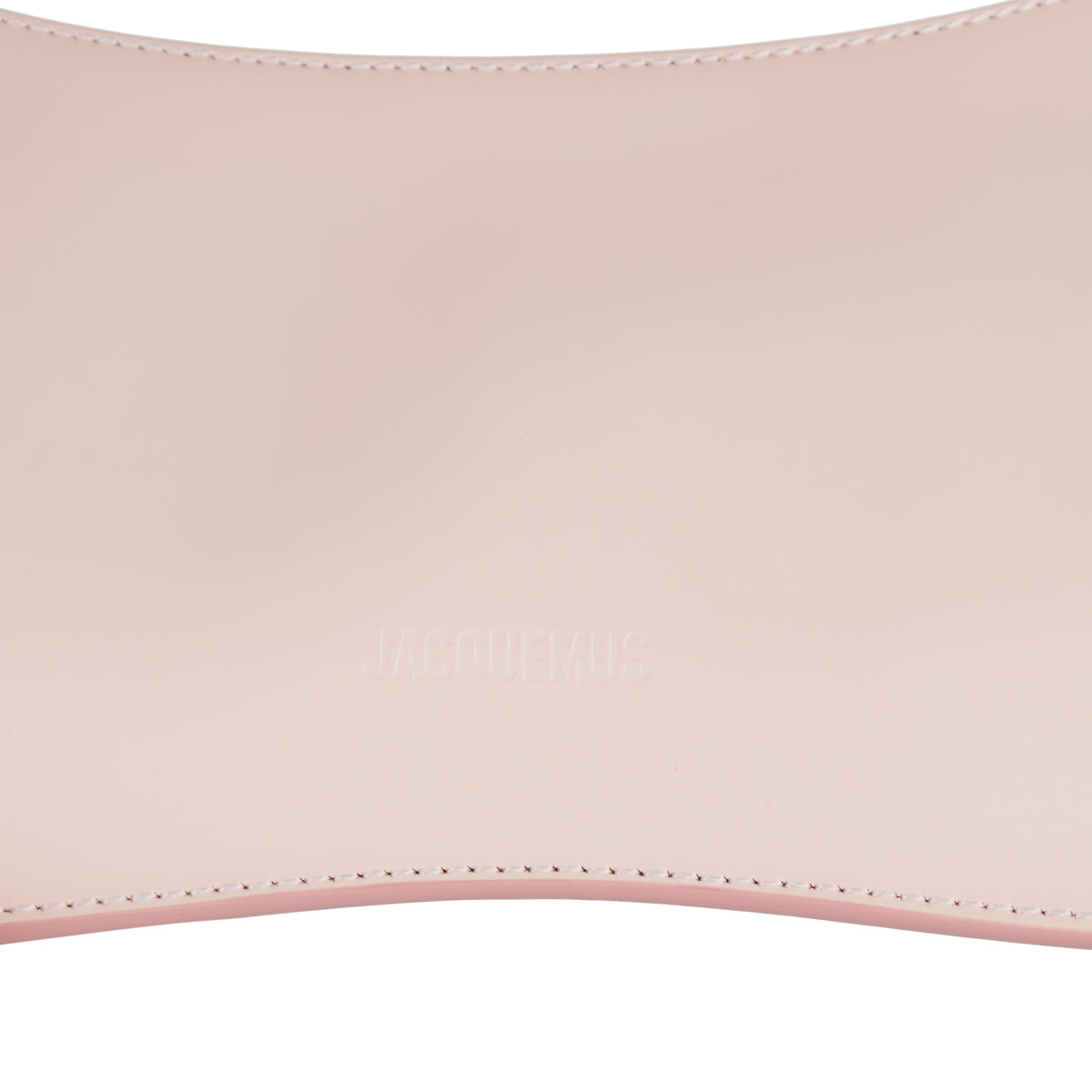 The Jacquemus Le Bisou shoulder bag is a sleek silhouette in glazed calf leather with silver-tone hardware. Featuring a zip closure, adjustable strap with engraved bead, and compact proportions, it embodies modern elegance. A versatile mini bag designed for both day and evening wear.
