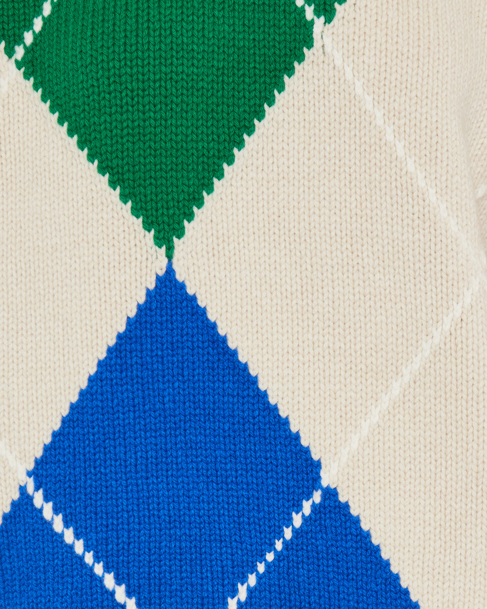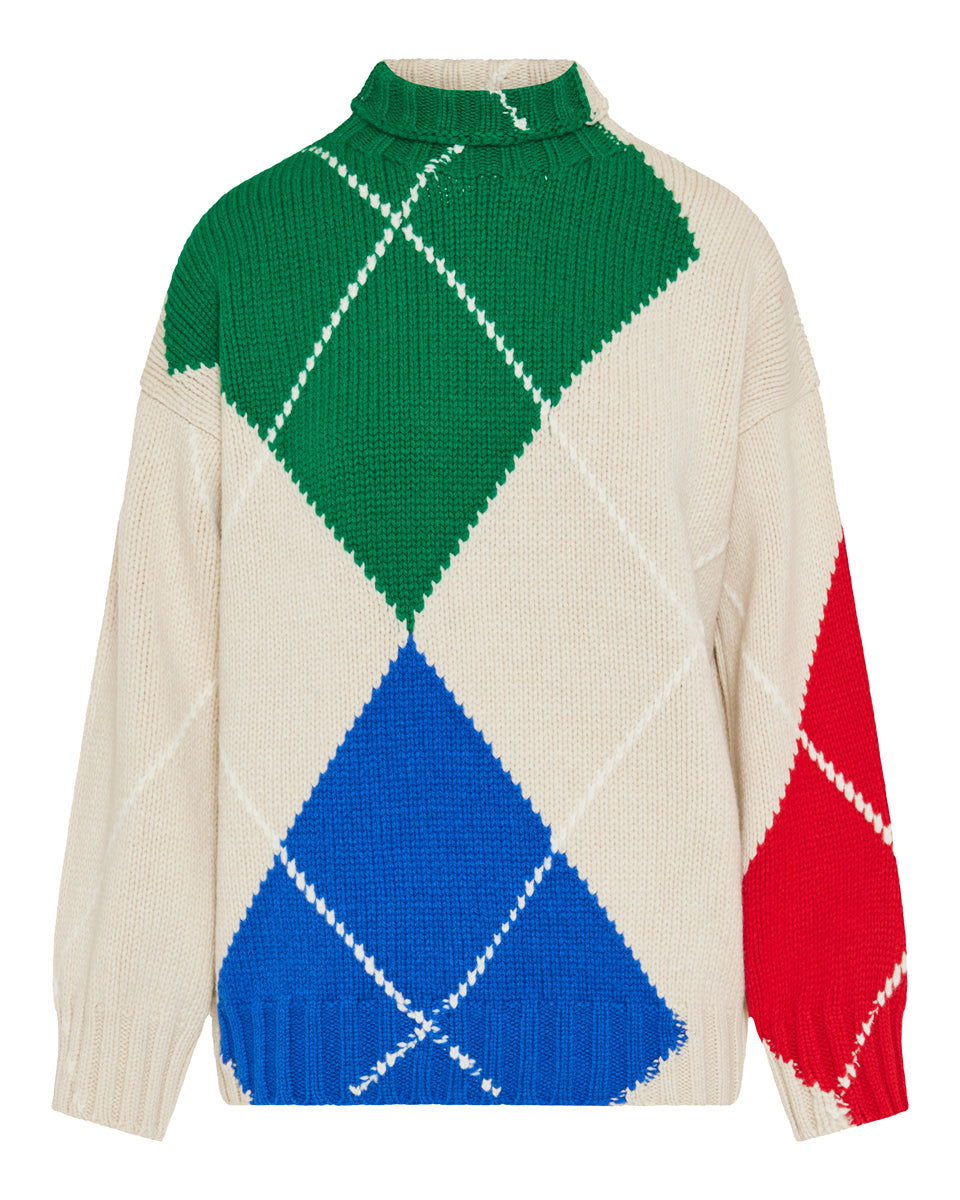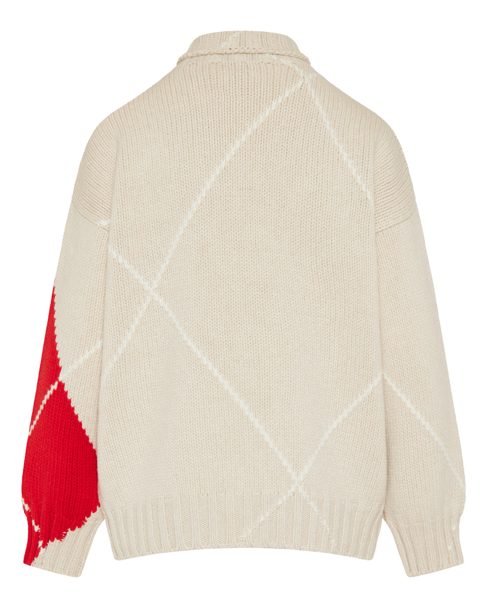 A statement knit that works equally well with tailored trousers or relaxed denim, bringing tradition and modernity together in one distinctive piece.