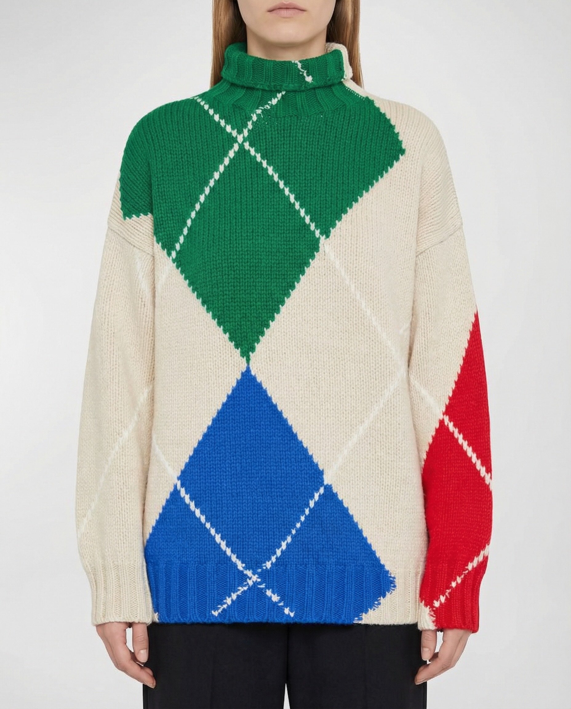 A contemporary take on heritage knitwear, this jumper is part of the JW Anderson x Pringle collaboration, blending classic Scottish argyle with a modern silhouette.