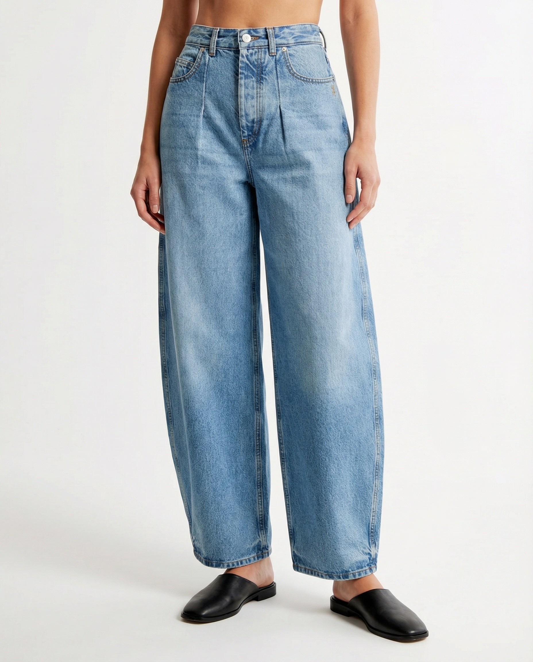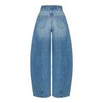 Modern denim jeans defined by an oval, sculpted silhouette, designed to bring structure and movement to everyday looks.