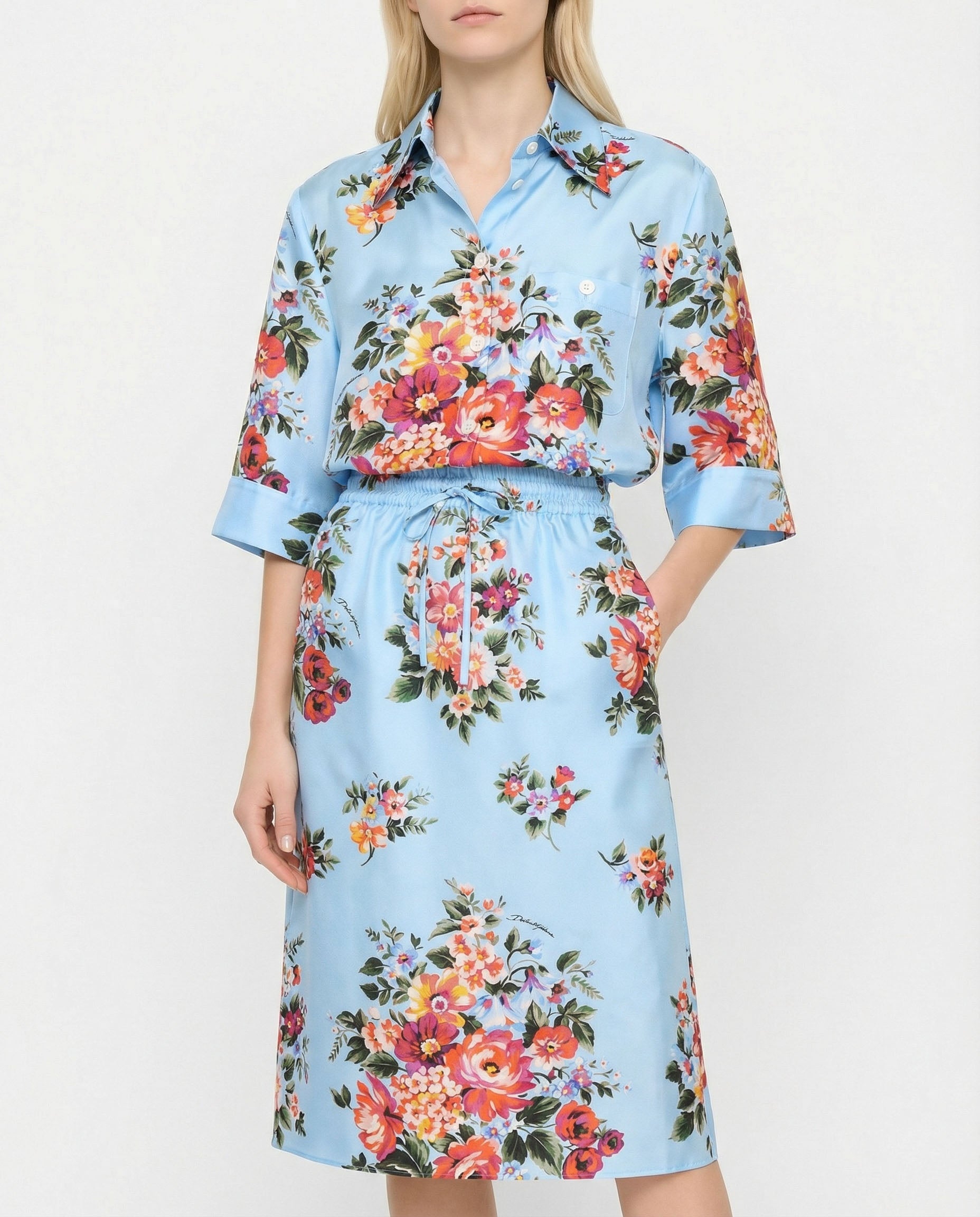 A flowing and elegant skirt that highlights Dolce & Gabbana’s signature floral motifs with luxurious silk craftsmanship.