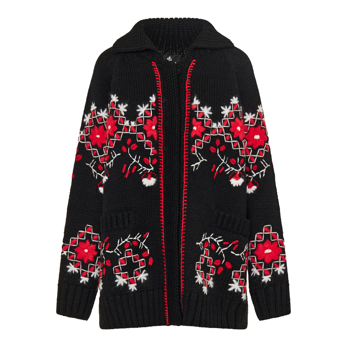Embroidered wool‑blend cardigan