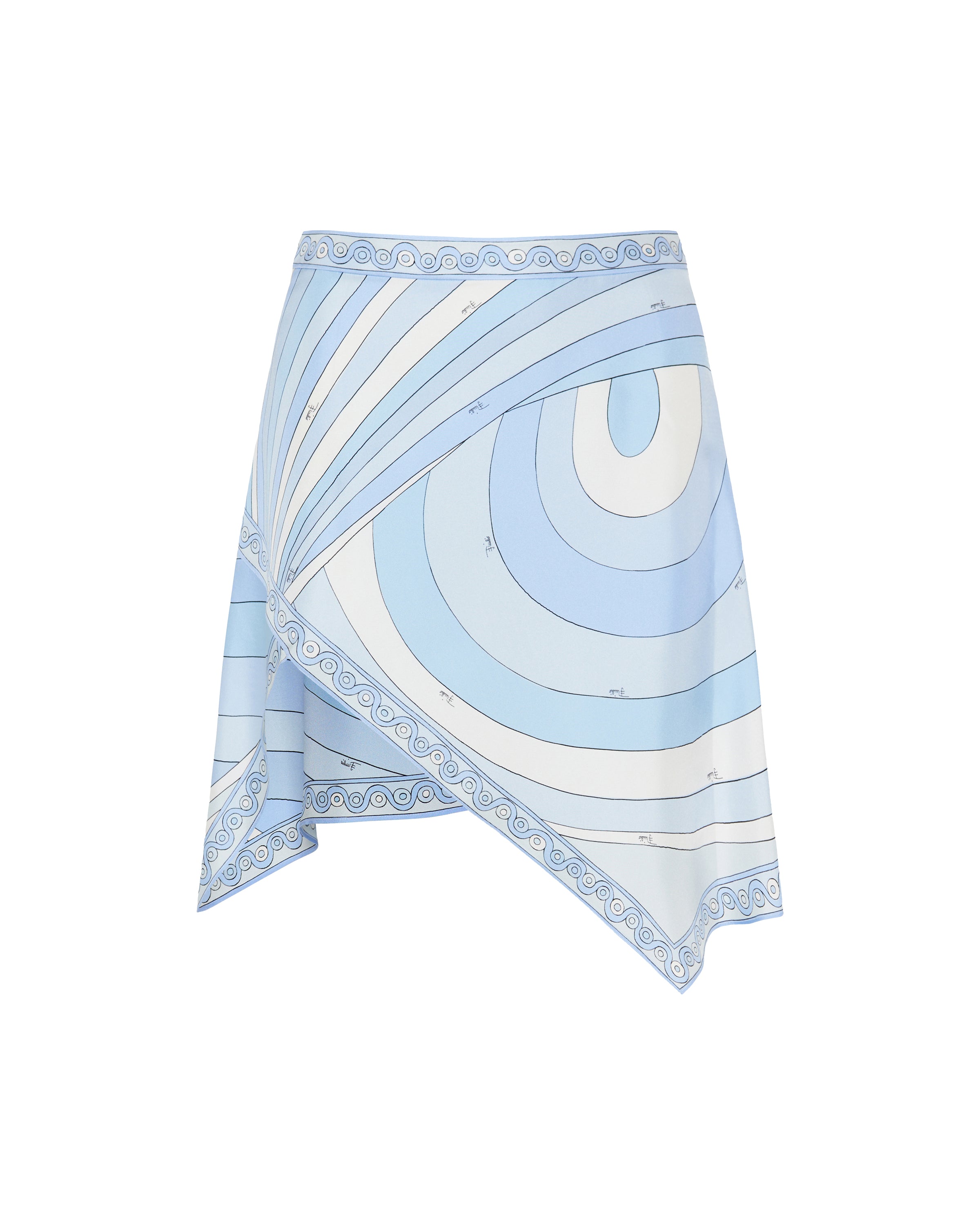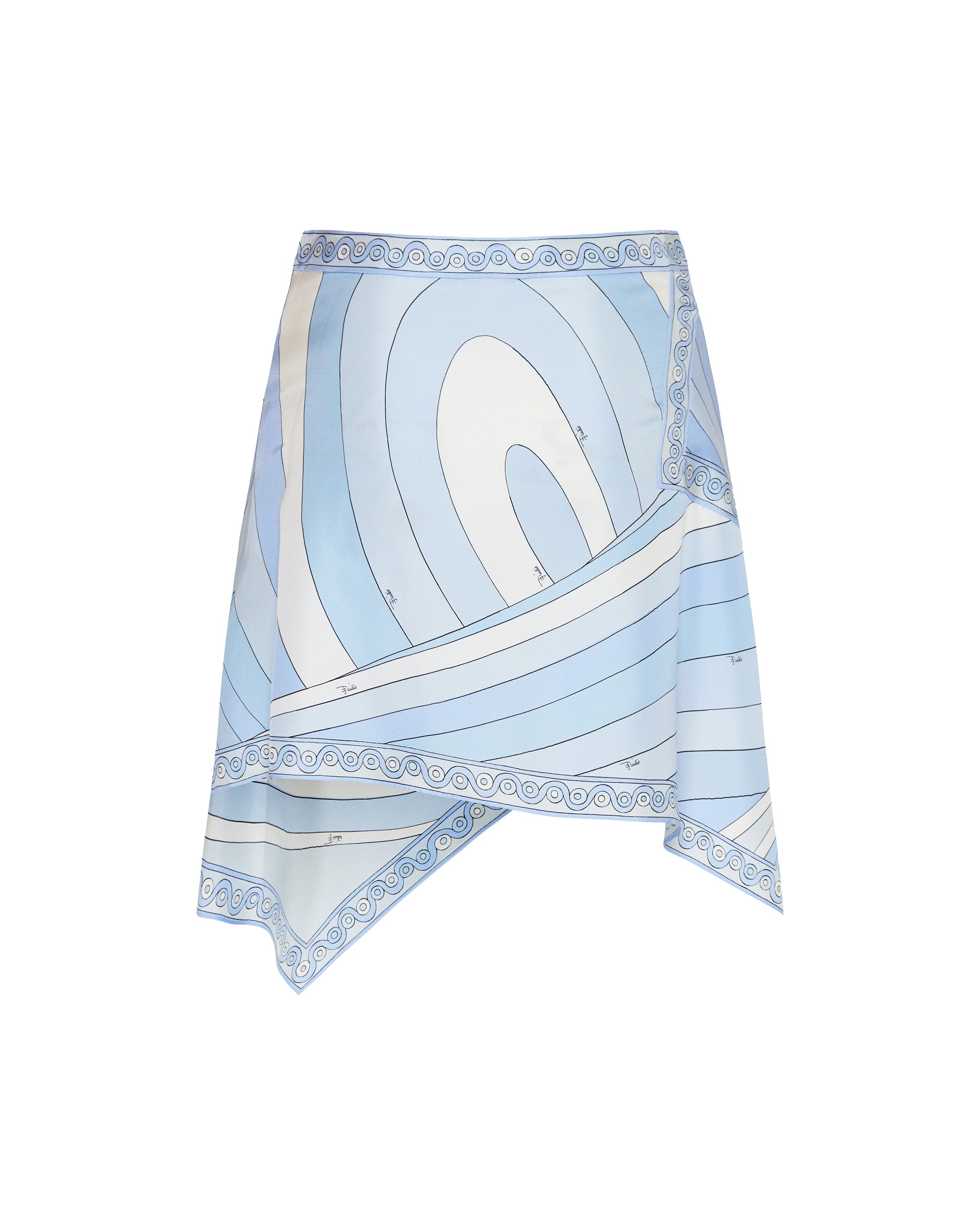 A fluid mini skirt in silk-twill, defined by a wrap silhouette and all-over graphic print.