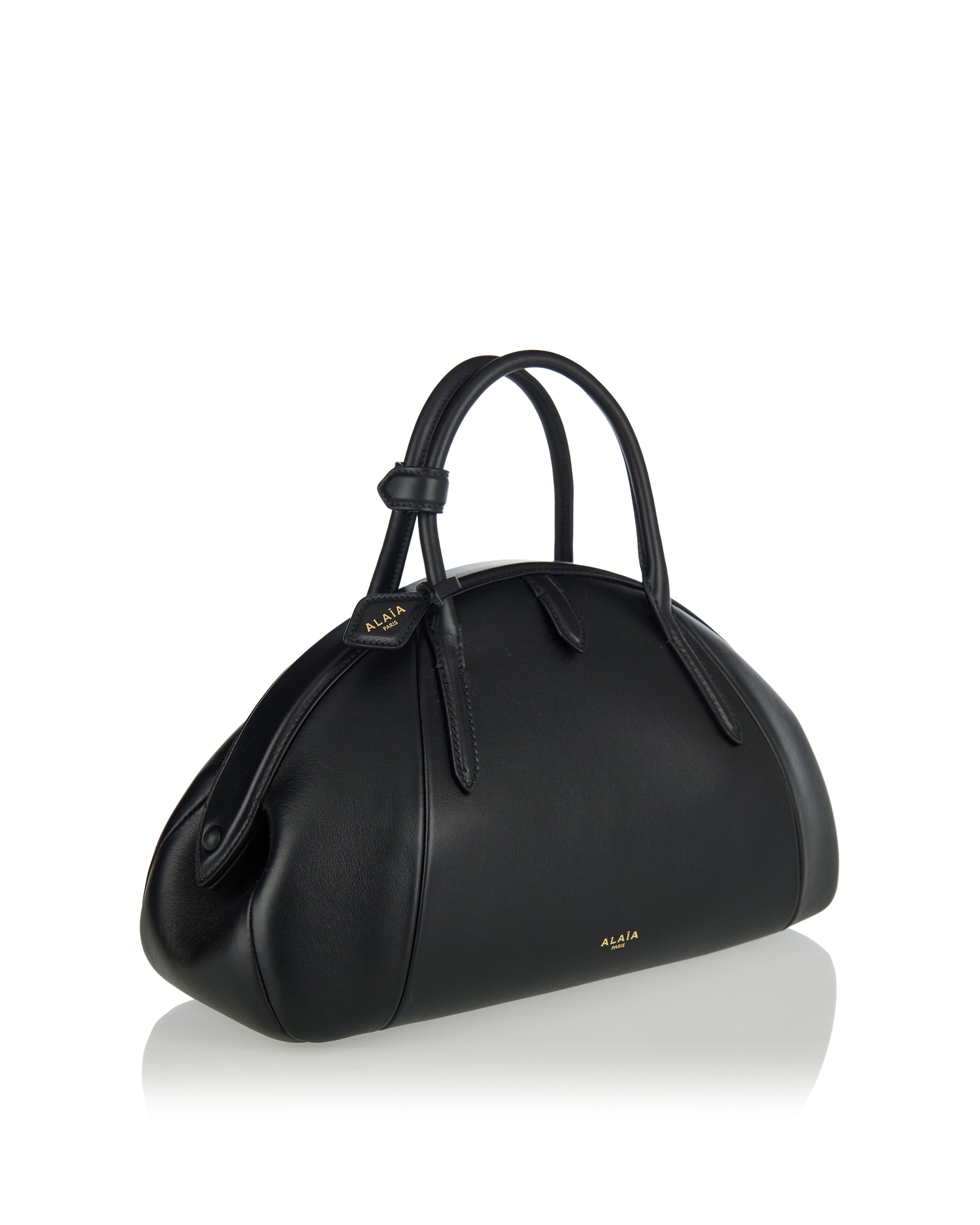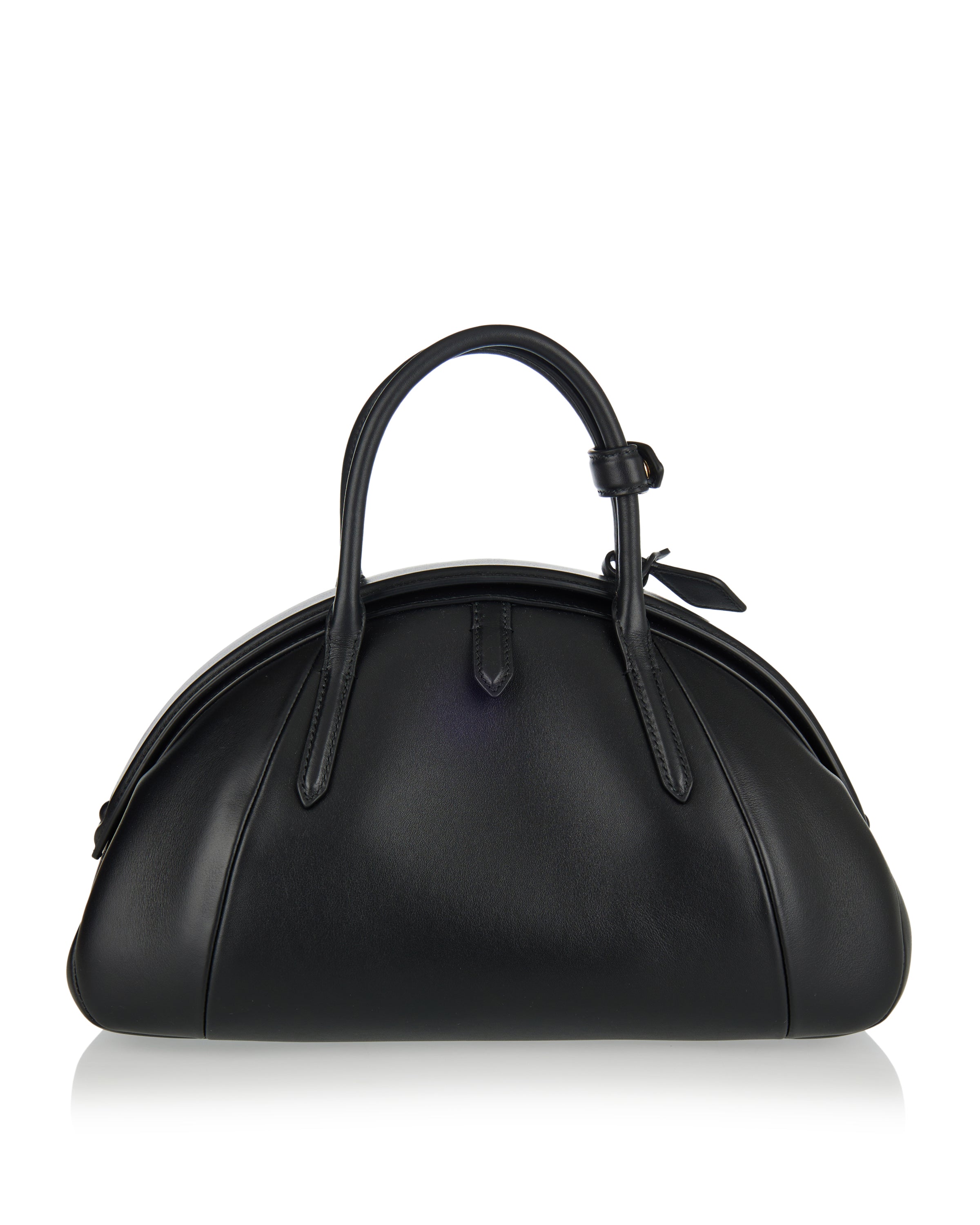 A structured shoulder bag crafted in smooth leather, featuring a compact silhouette and refined, architectural lines.