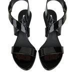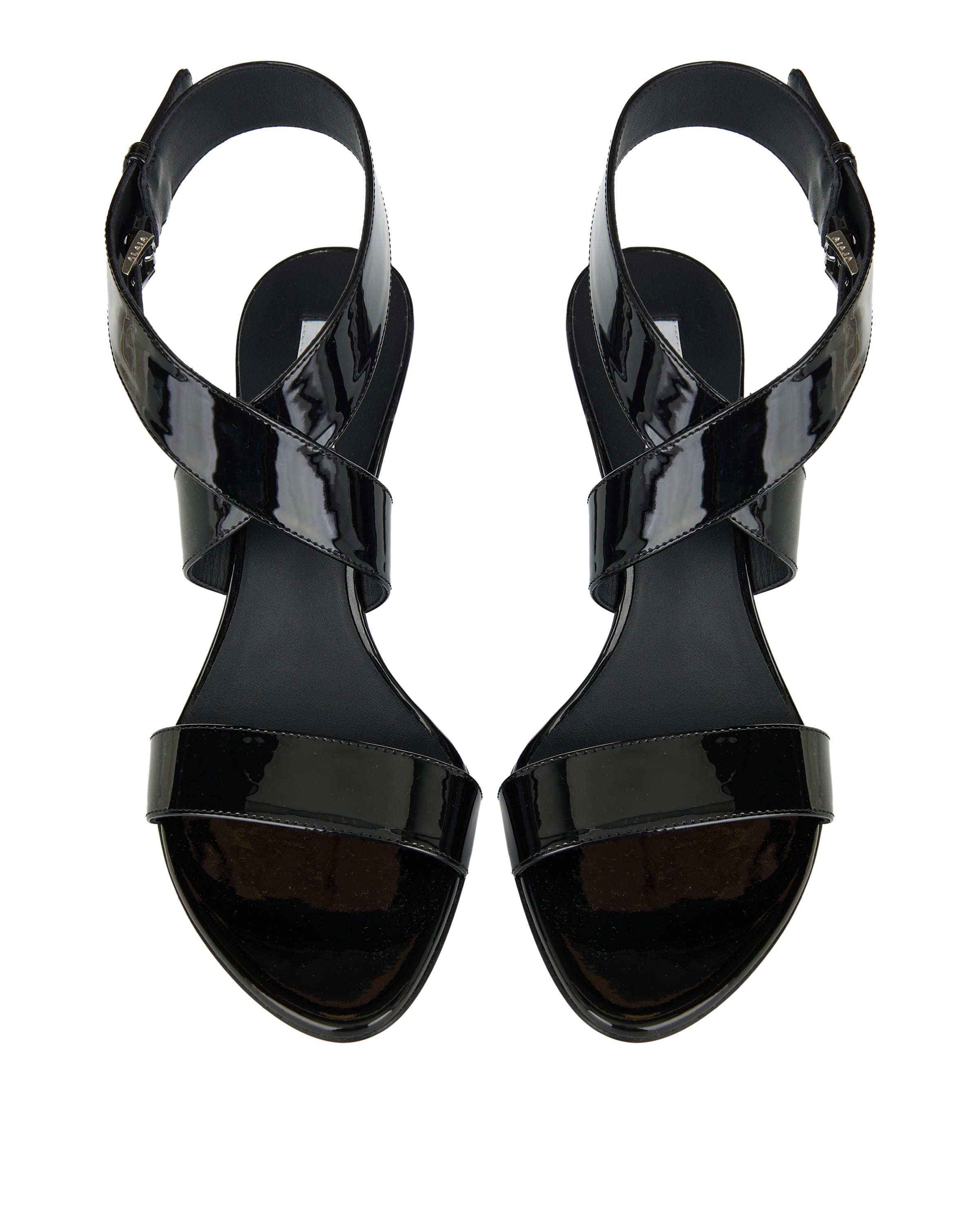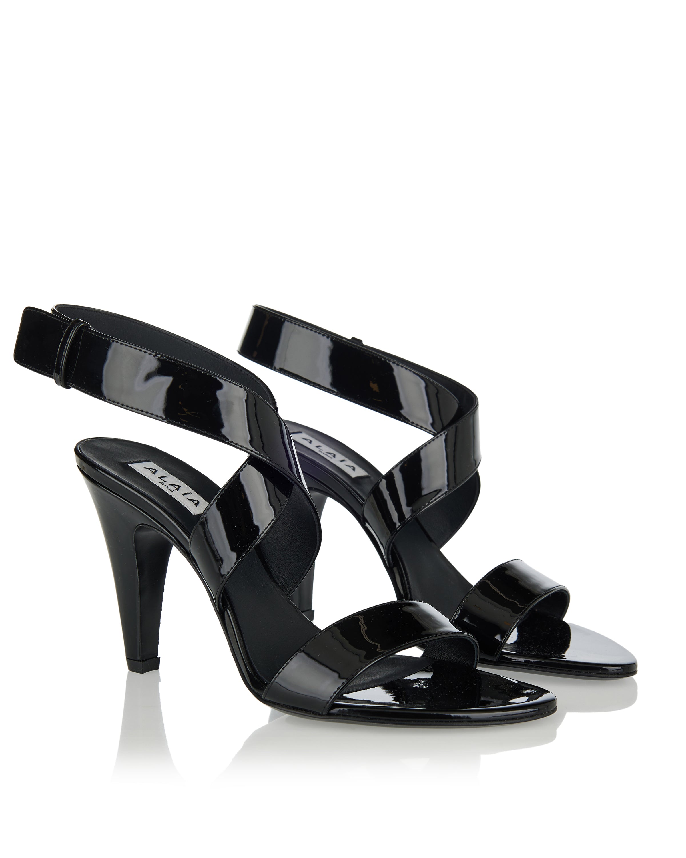 Elegant sandals crafted in smooth leather, featuring a sculptural silhouette and minimalist, architectural design.