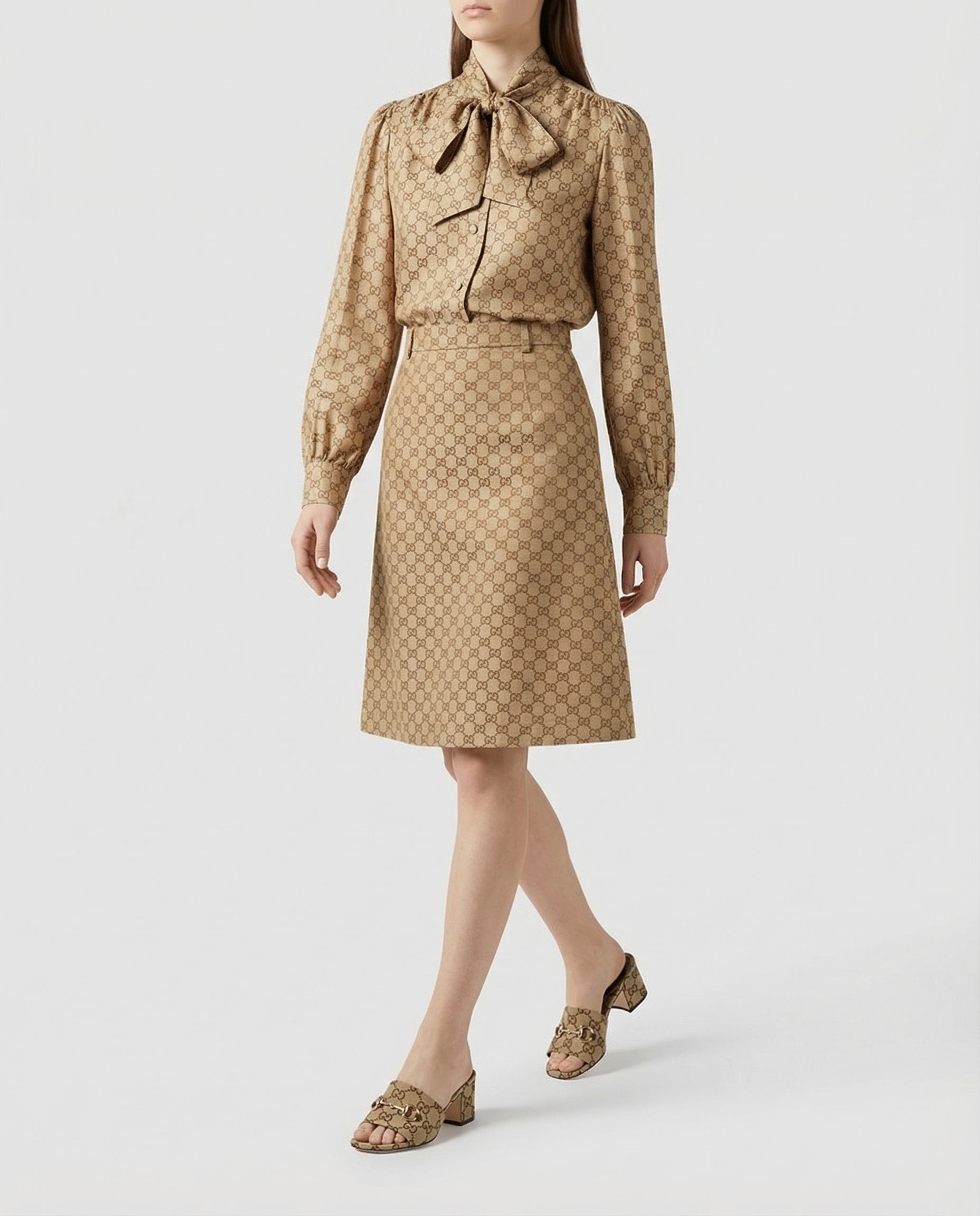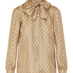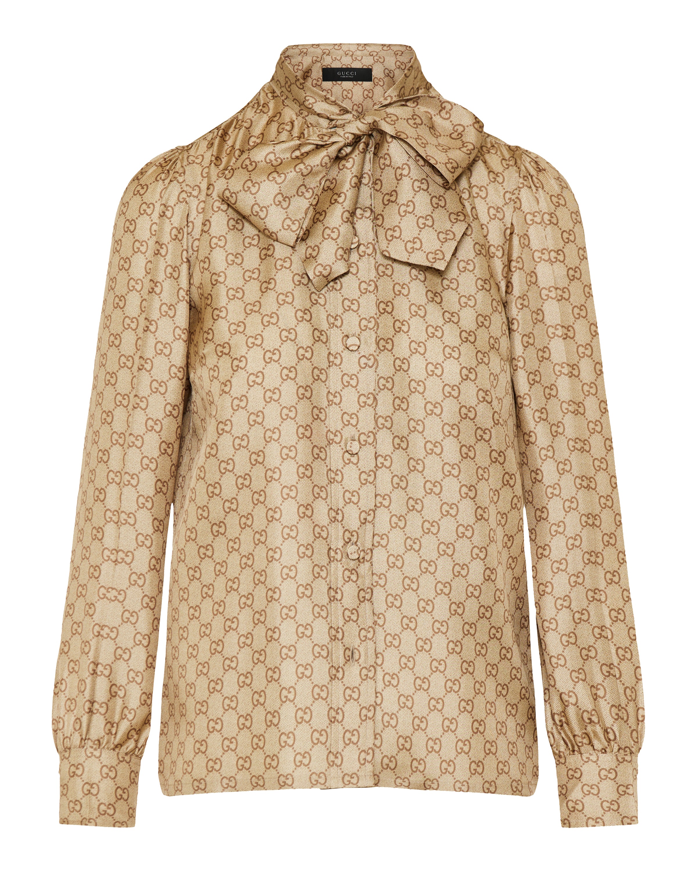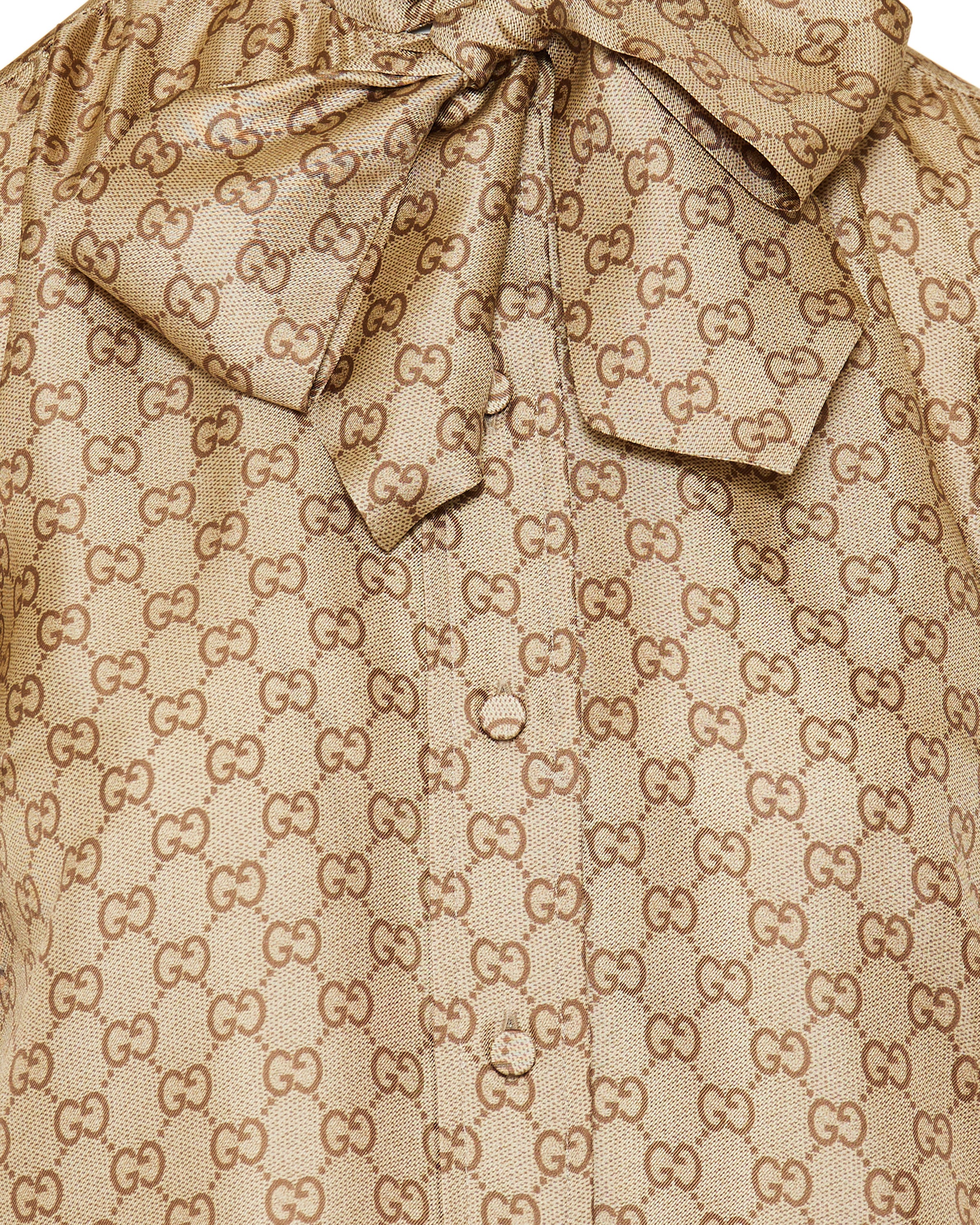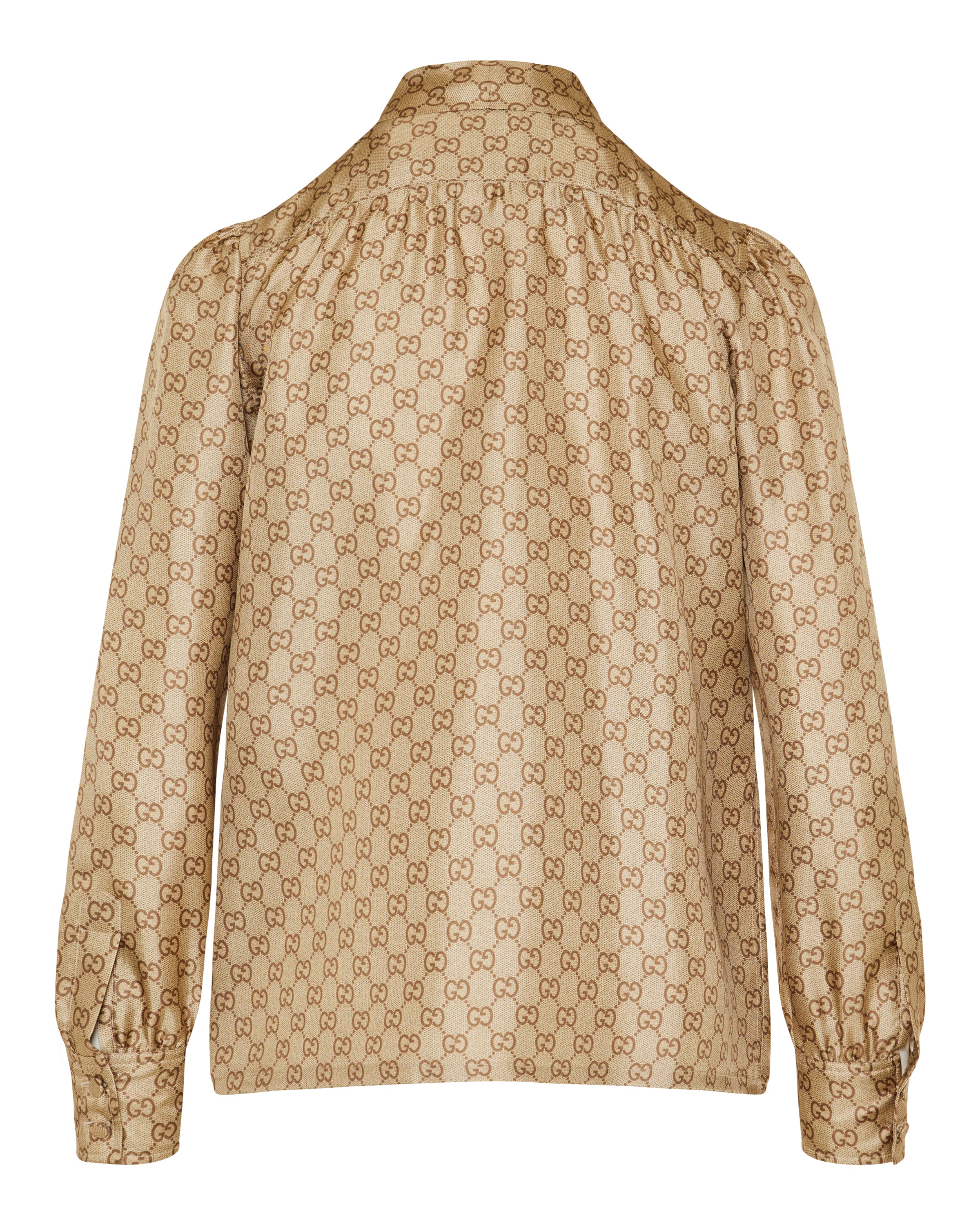 A fluid silk twill shirt defined by an expressive print and a tie-neck detail that adds movement and refined structure.