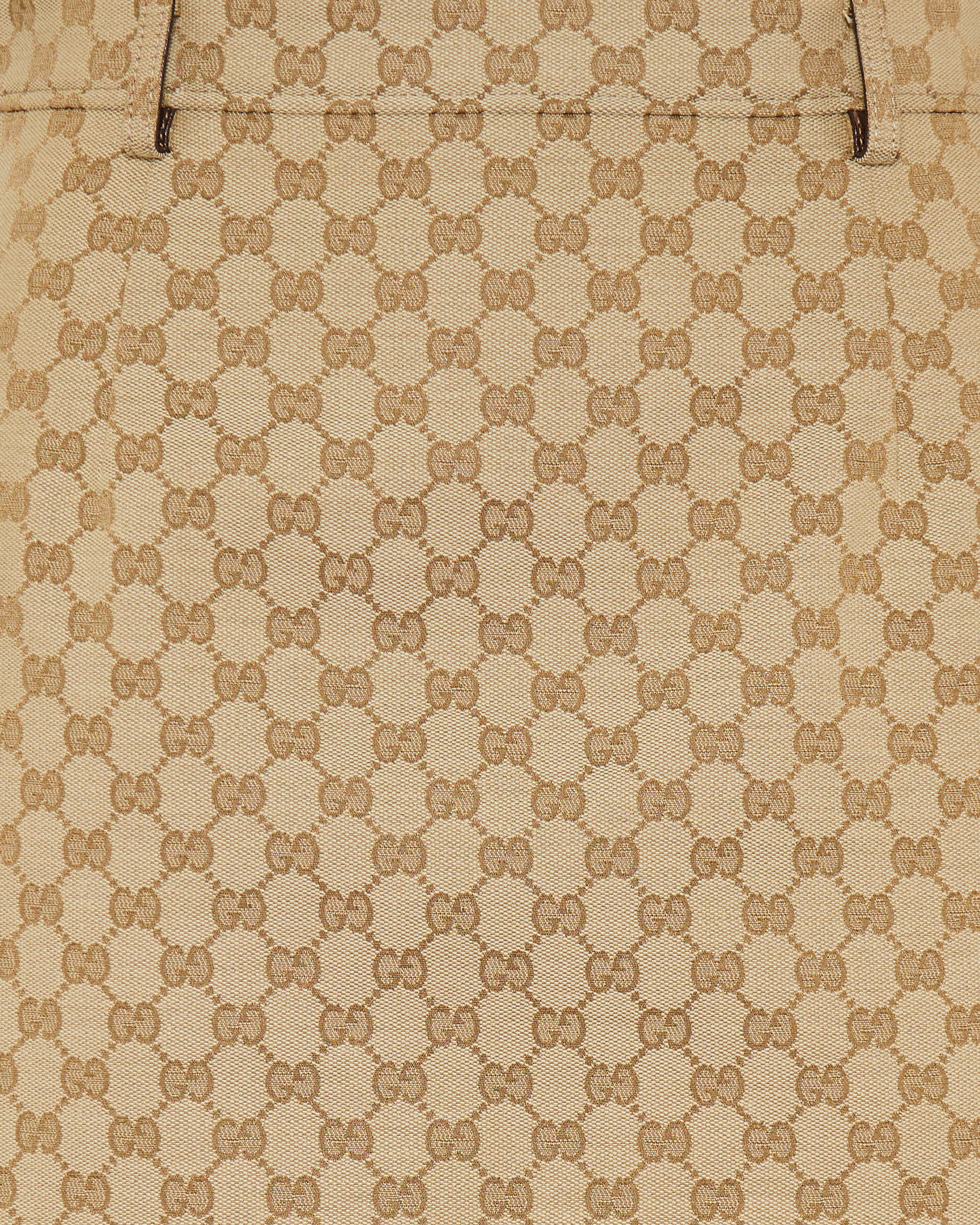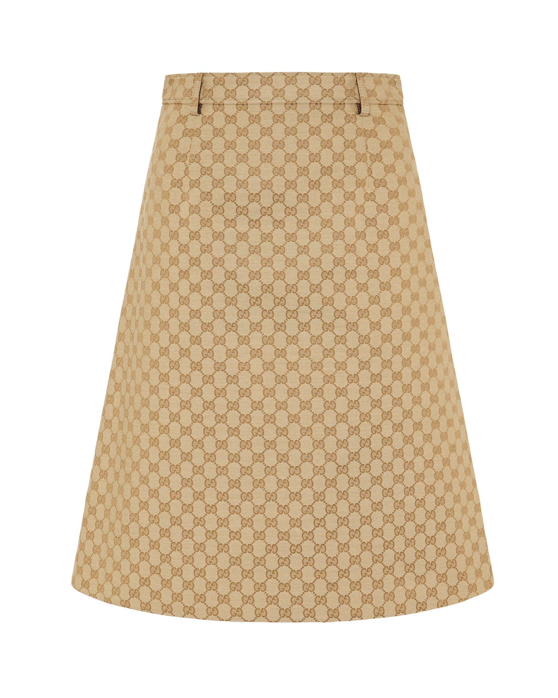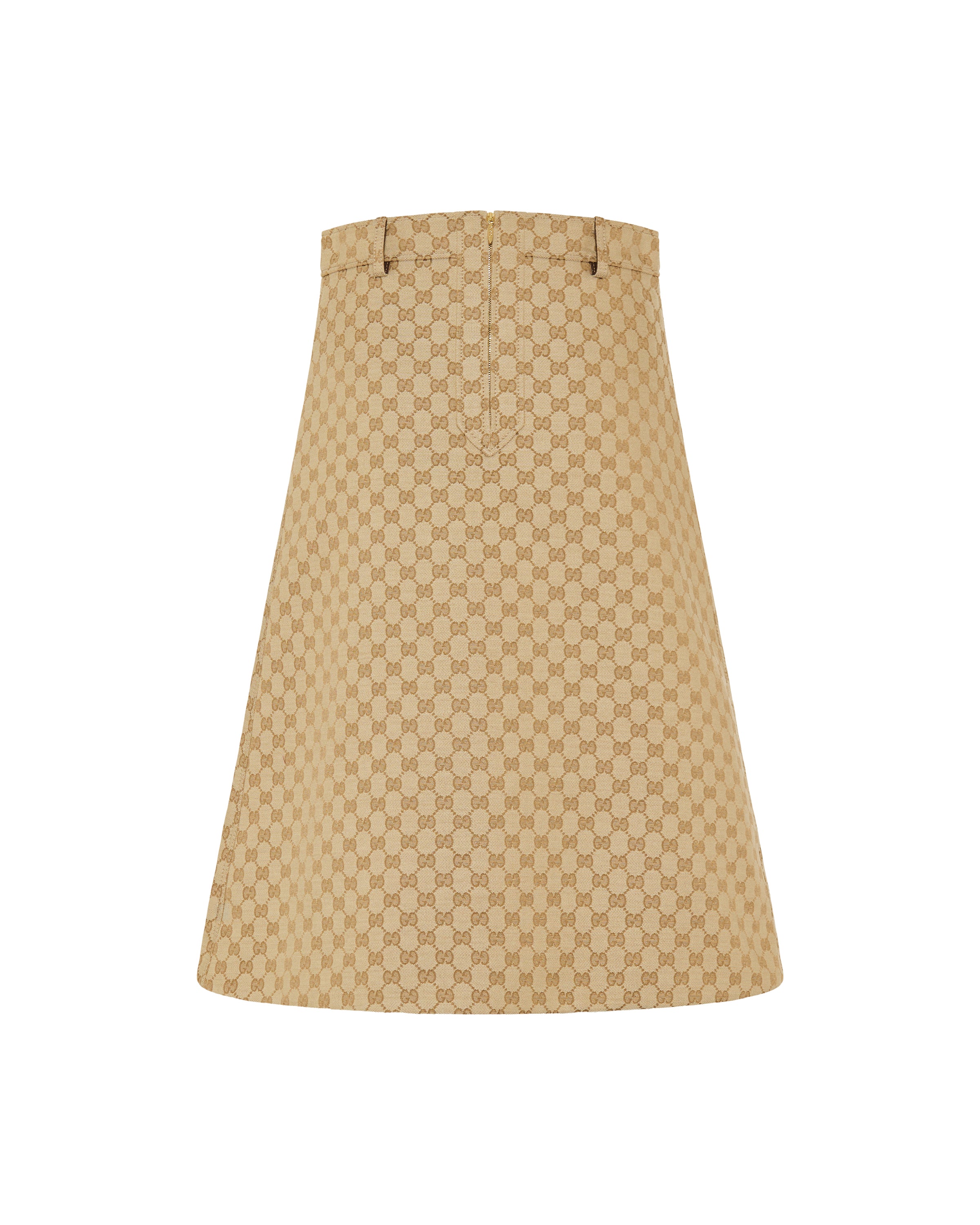Skirt crafted in structured GG cotton canvas, defined by its clean silhouette and signature monogram motif. A statement piece that blends heritage detailing with contemporary tailoring.- GG cotton canvas fabric