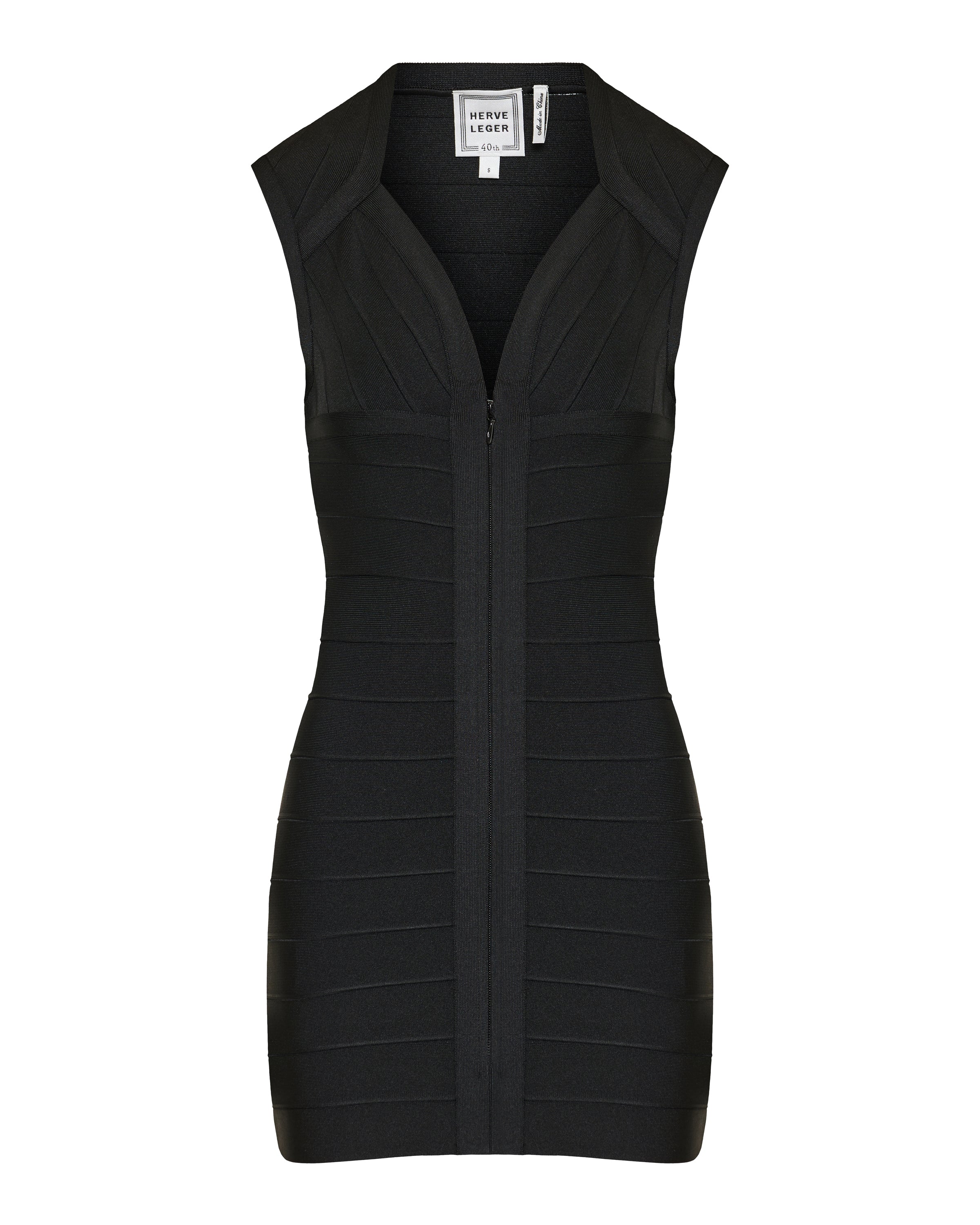 Crafted from signature stretch bandage material for supportive, contouring fit
