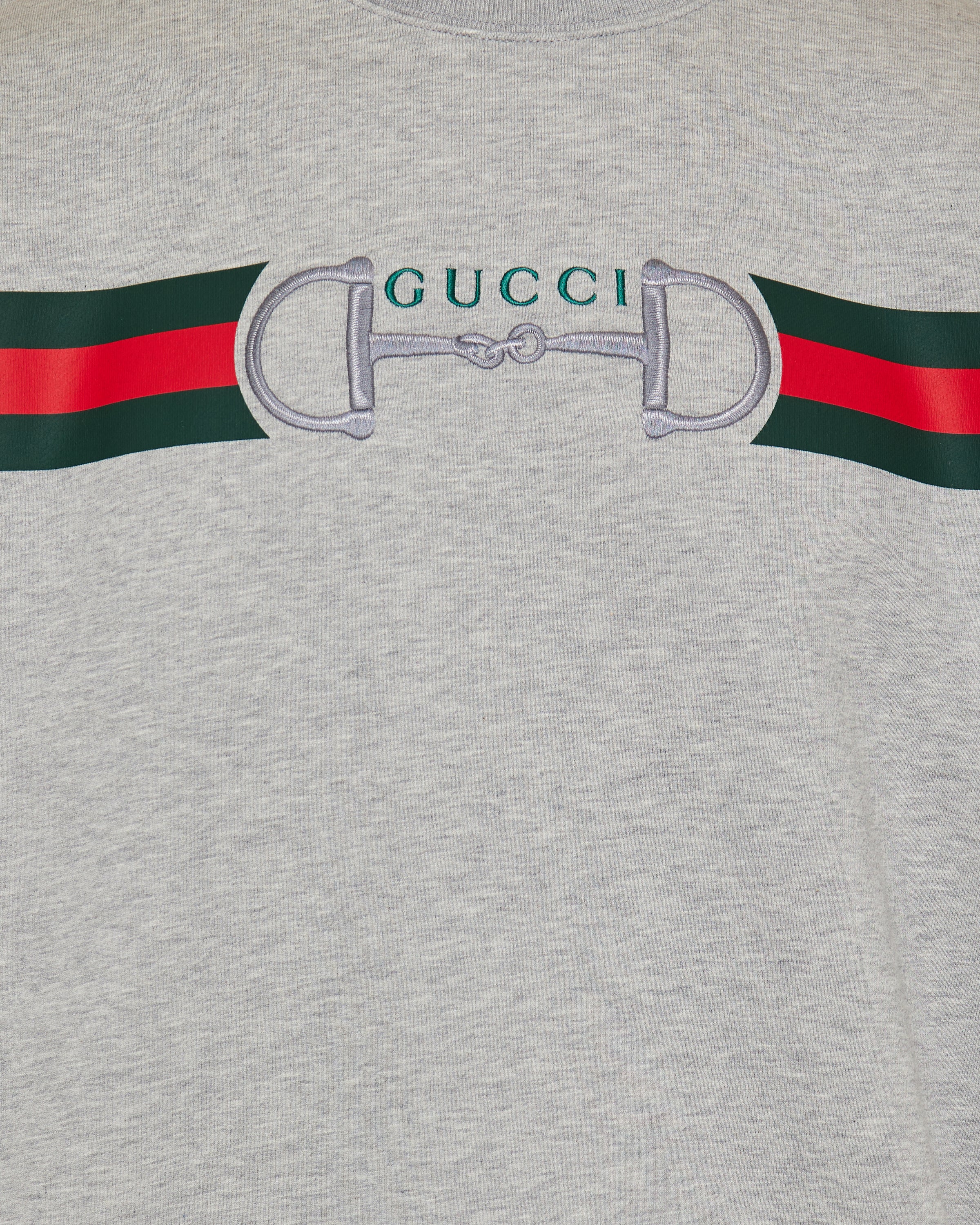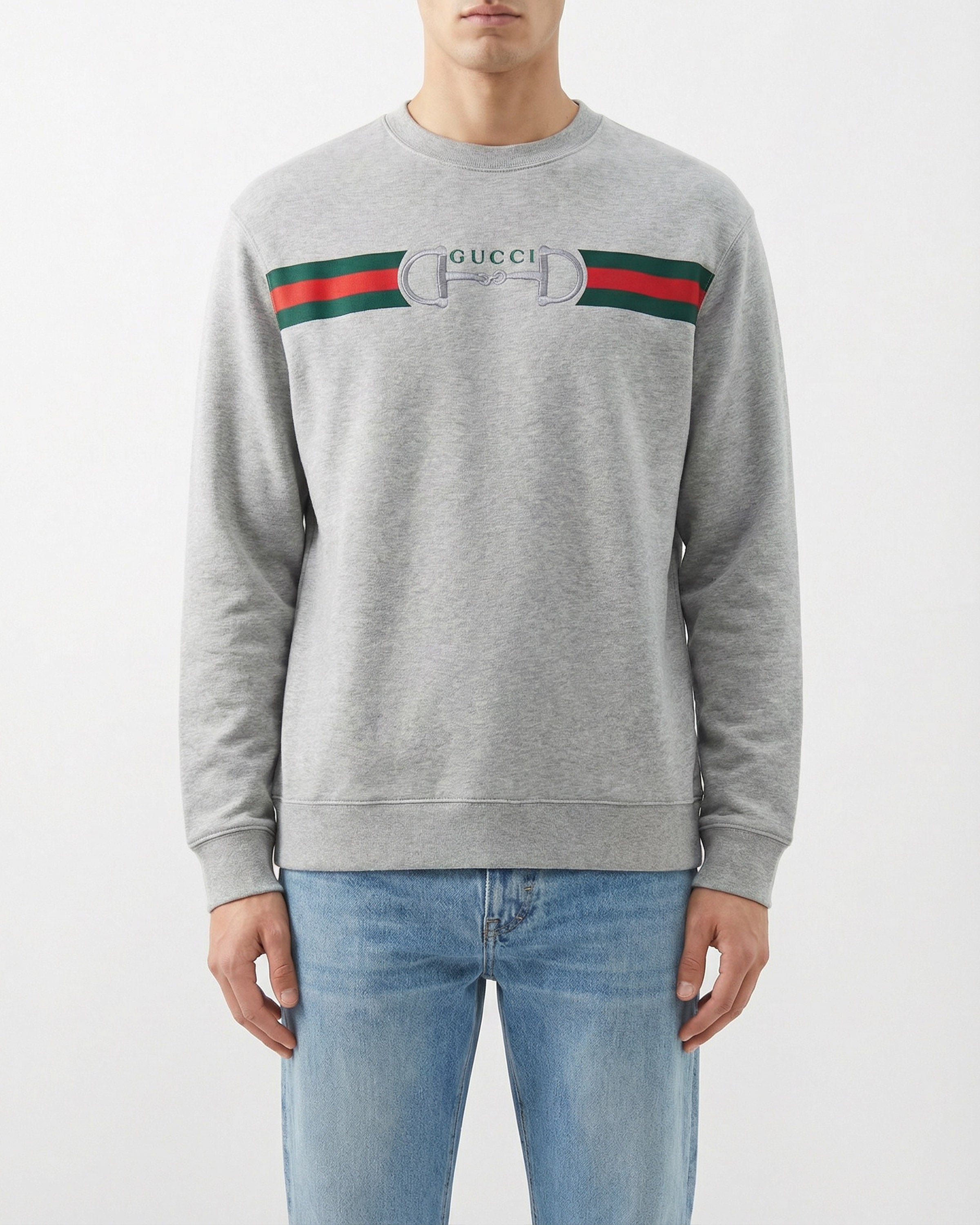 Combining comfort with contemporary character, this sweatshirt reflects Gucci’s modern approach to casual essentials. Crafted from cotton jersey, it features a relaxed silhouette enhanced by a distinctive printed detail that adds subtle visual interest. Balanced and versatile, it is suitable for everyday wear, refined off-duty styling, and modern city looks, offering an effortless blend of ease and understated luxury.