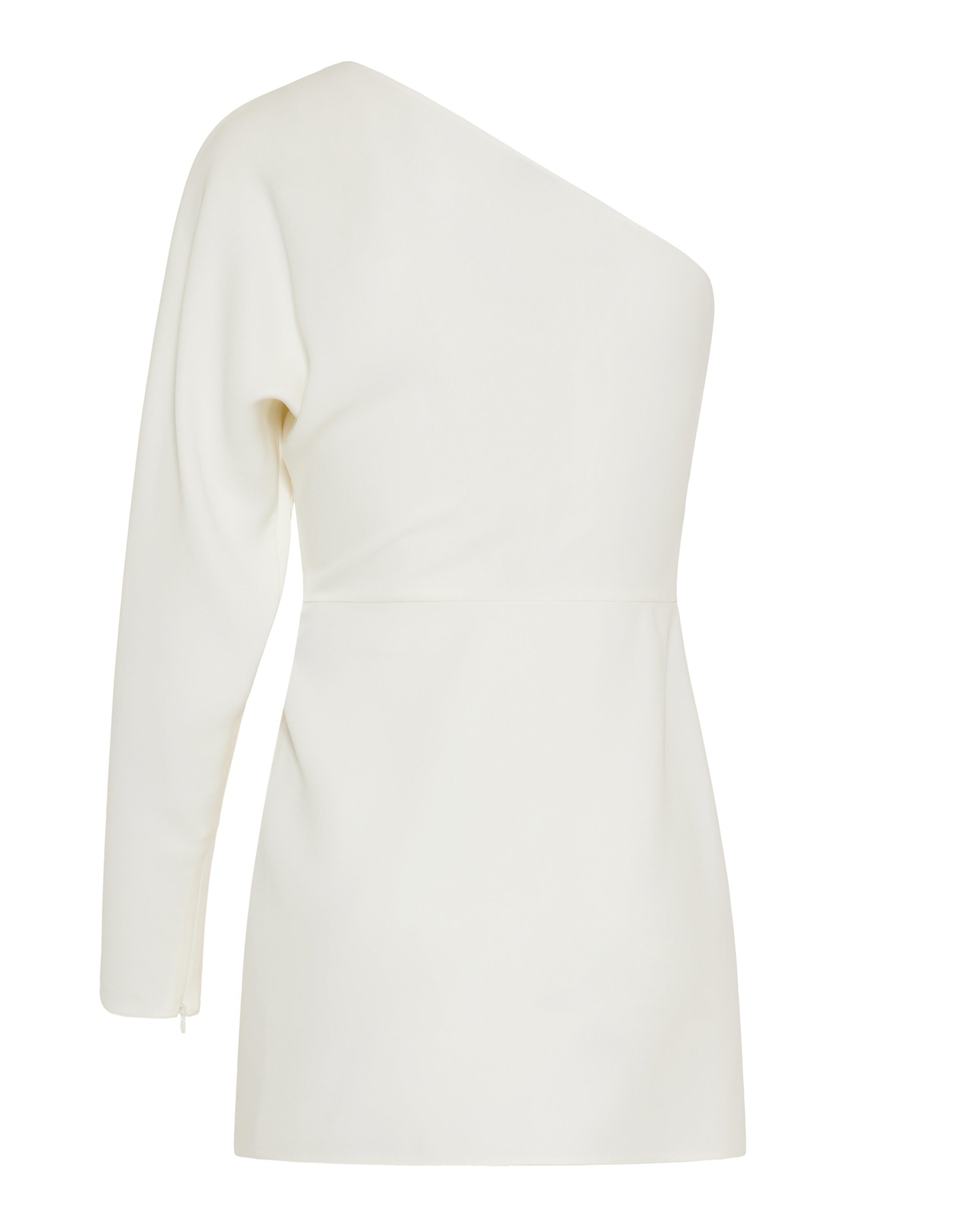A refined one‑shoulder top in ivory crafted from luxurious Cady Couture silk with a gathered waist that defines a sculptural silhouette. Designed in Italy for elevated casual and refined daytime or evening wear, this sophisticated piece combines minimalist elegance with Valentino’s couture heritage for effortless style.
