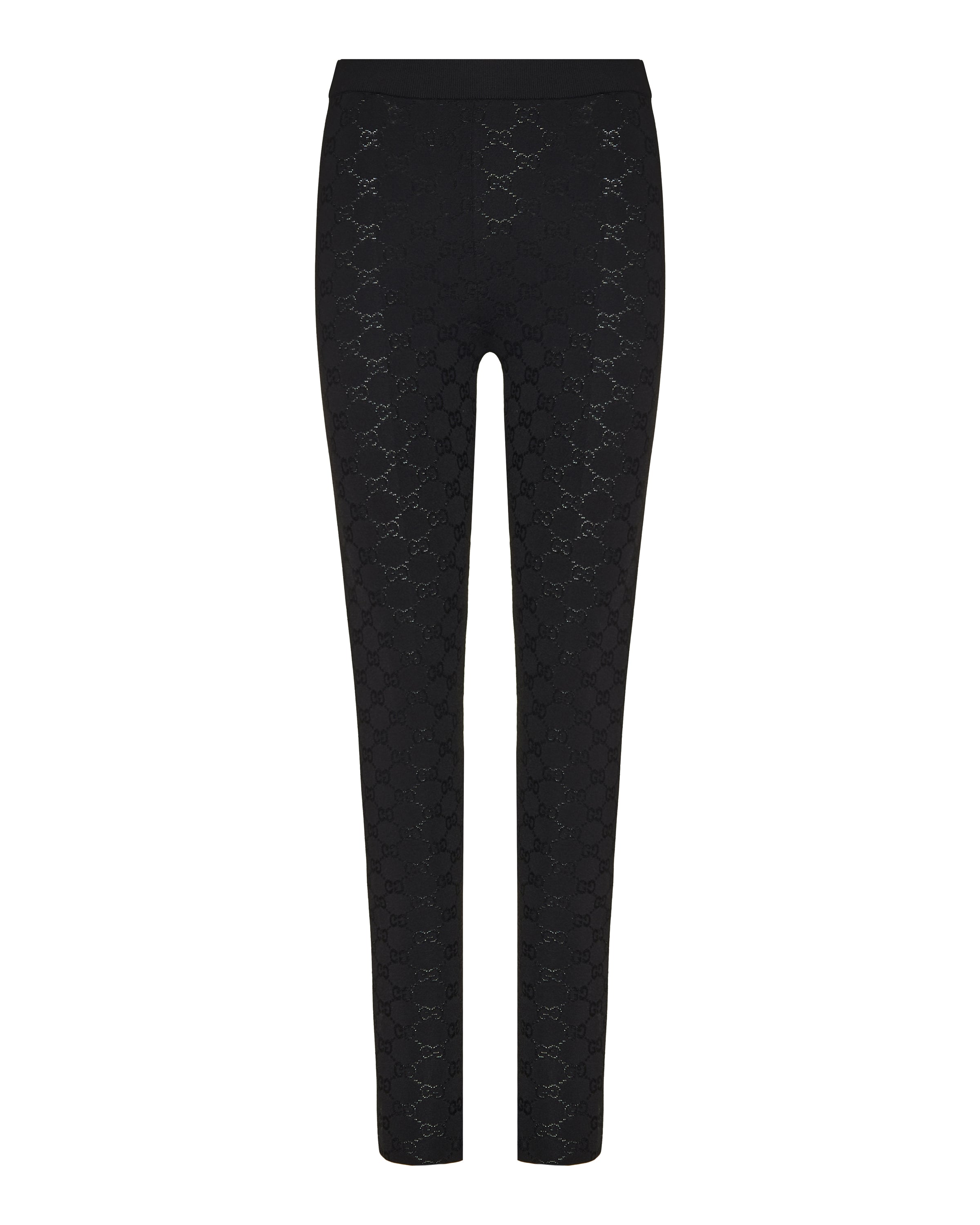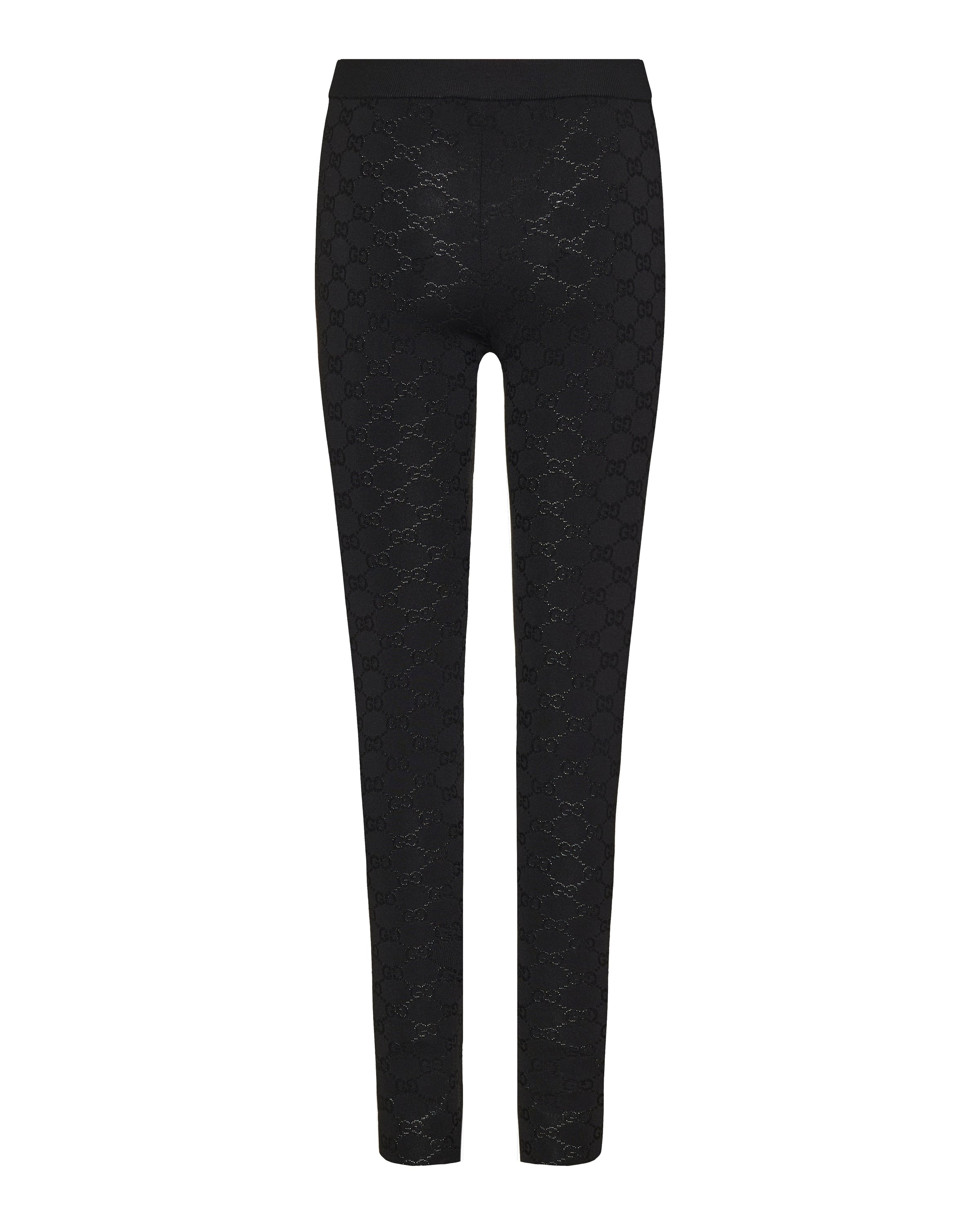 Sleek and contemporary, these Gucci leggings reinterpret an iconic house motif through a refined, modern lens. Designed with a streamlined silhouette, they feature an allover GG embroidery and a ribbed waistband that enhances structure and comfort. Suitable for everyday wear, elevated casual styling, and refined off-duty looks, they offer a confident balance of comfort and understated luxury.