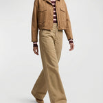 Tailored trousers crafted from cotton, defined by a wide-leg silhouette that creates fluid movement and a clean, structured line.