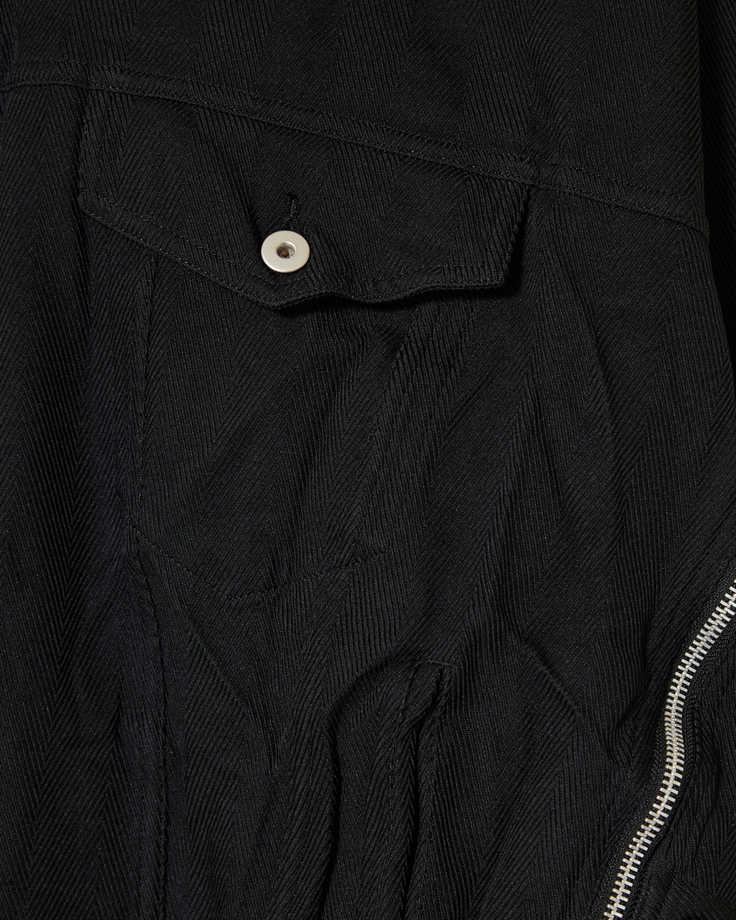 A directional reinterpretation of a classic silhouette, this jacket introduces fluid movement through its bias-cut construction and unexpected side zip detail.