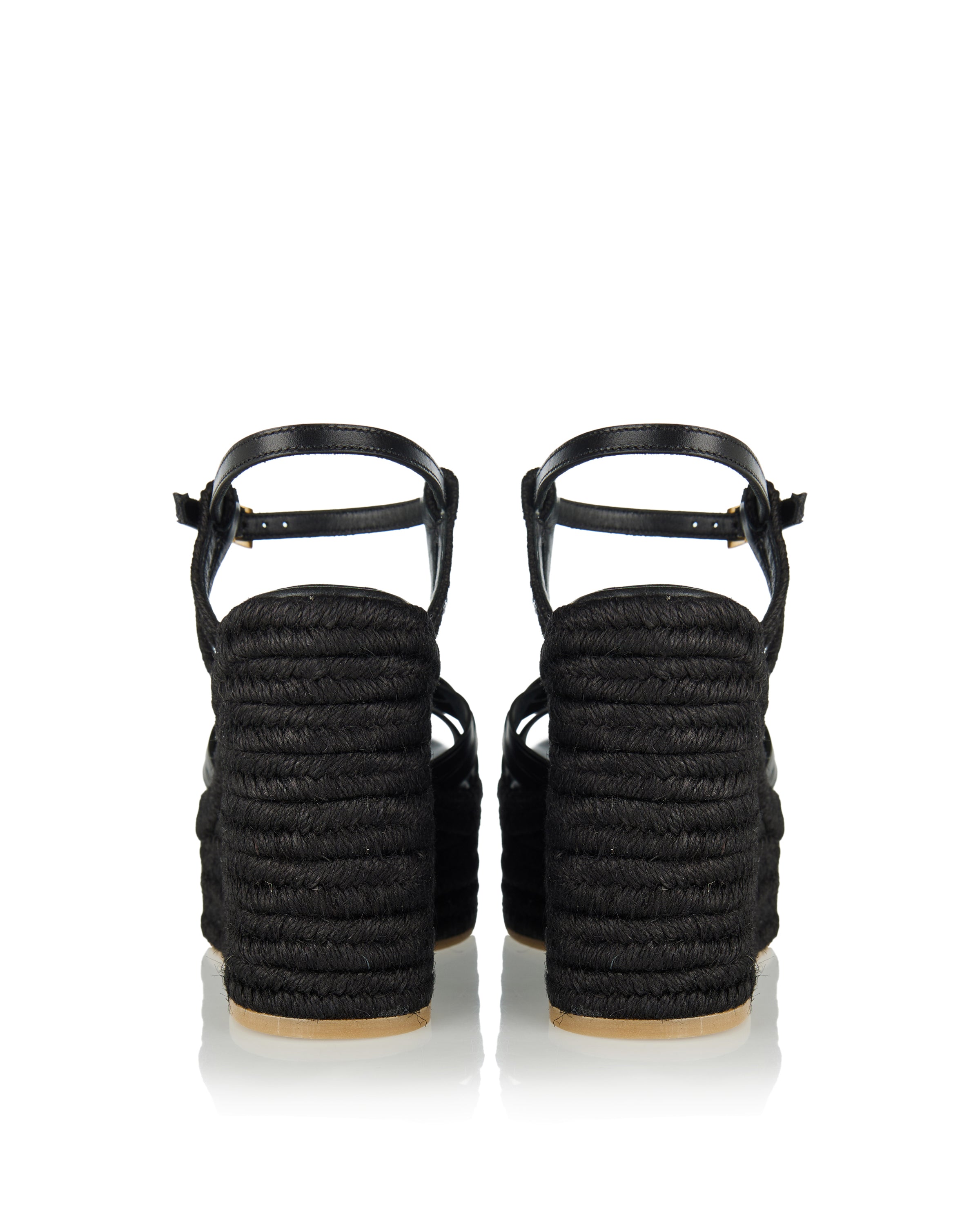 Wedge espadrilles crafted in woven raffia and framed with smooth leather trims, designed to balance natural texture with refined structure. Set on a braided jute wedge, the Bribri silhouette delivers height with stability — an elevated essential for summer dressing, from city afternoons to island evenings.